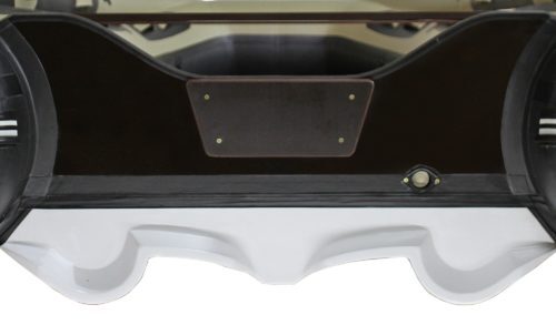 В нижней части транца установлена транцевая плита из стеклопластика, что повысило скоростные характеристики лодки за счет улучшения срыва потока воды, также за счет жесткости при транспортировке лодки исключается деформация интерцептора.