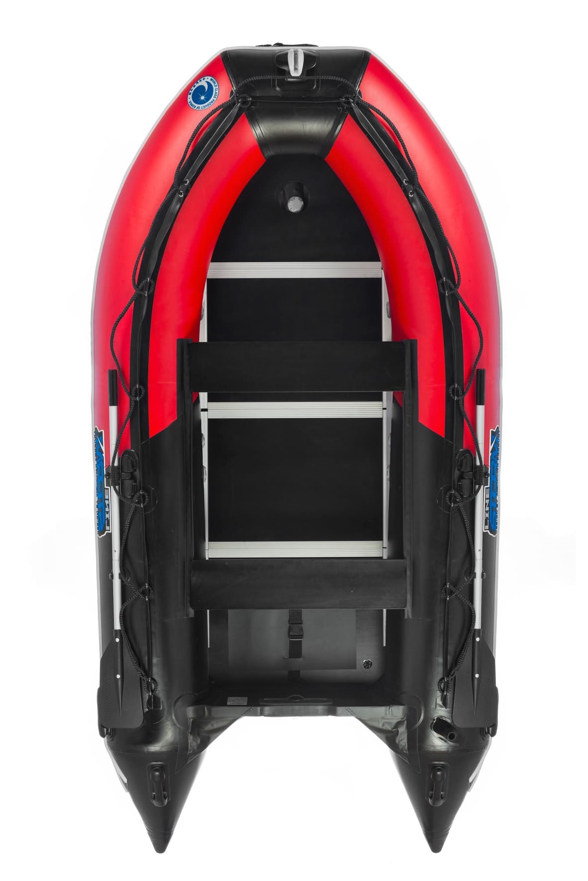 Матрица материала ПВХ выполнена из полиэстровых волокон, который отличается гораздо большей упругостью и меньшей истираемостью по сравнению с нейлоновыми. Это не только улучшает живучесть лодок, но и значительно повышает их мореходные характеристики, ввиду меньшей деформации и сопротивления