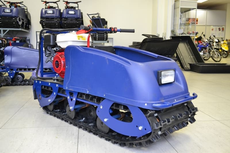 Модель оснащена гусеницей шириной 500 мм. Гусеница мотобукса оснащен высоким грунтозацепом среди буксировщиков на рынке, обеспечивает максимальную проходимость. Кроме того, имеет грунтозапы препятствующие боковому скольжению, что незаменимо при движении вдоль склонов.