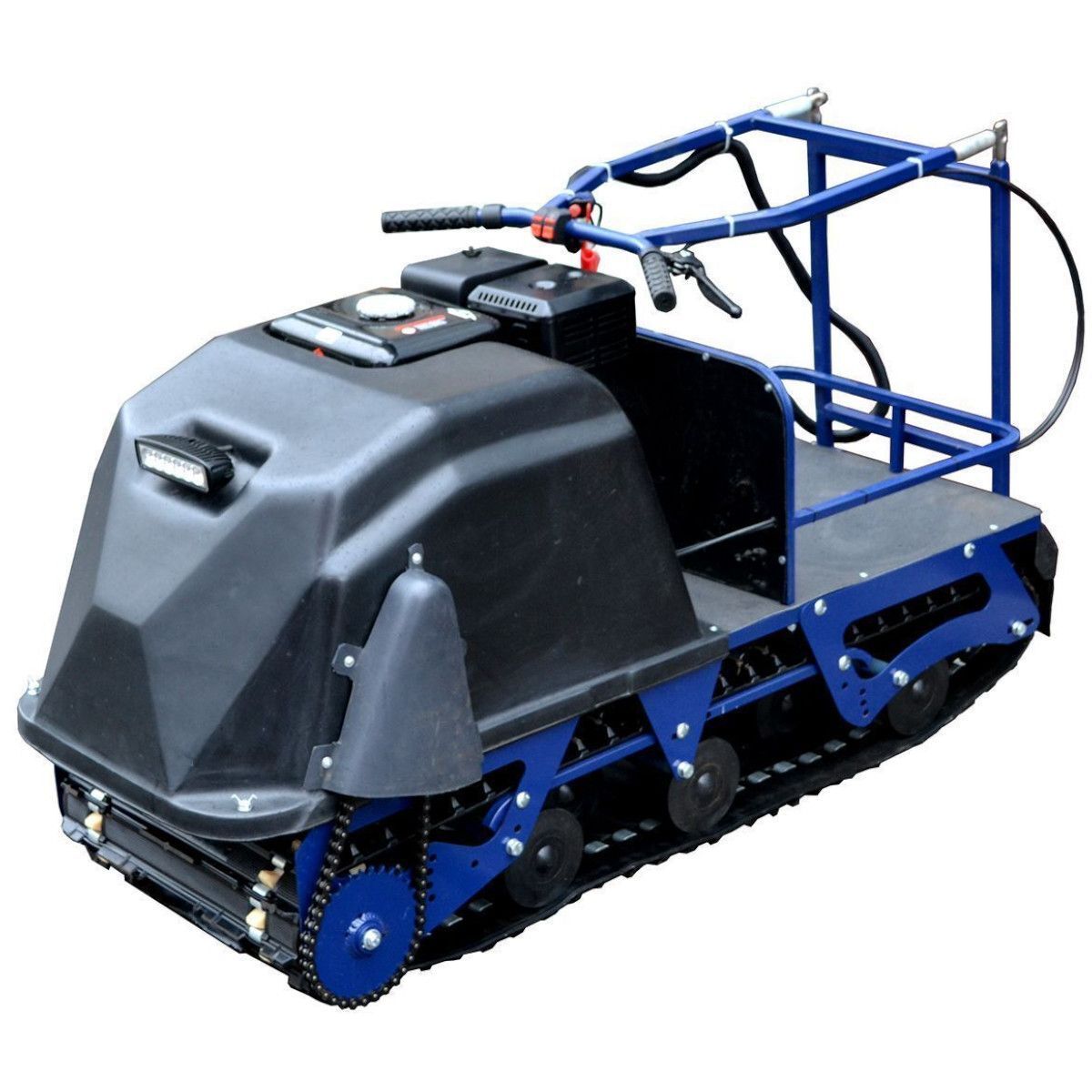 Модель оснащена гусеницей шириной 500 мм. Гусеница в сочетании с катковой подвеской способна проходить спокойно по льду и даже по территории без снега.