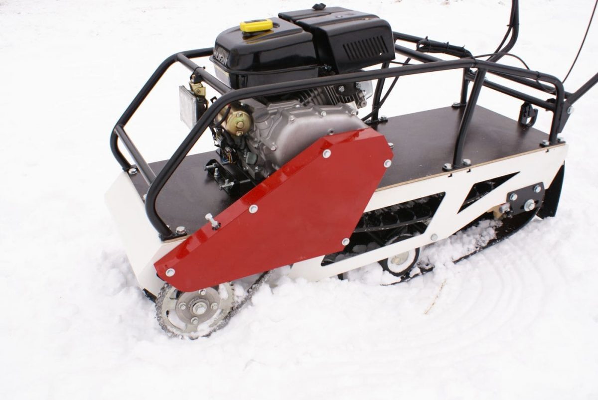 Модель оснащена гусеницей шириной 380 мм. Гусеница в сочетании с катковой подвеской способна проходить спокойно по льду и даже по территории без снега. Установлена цепь Ditton (Латвия), натягивается натяжным роликом.