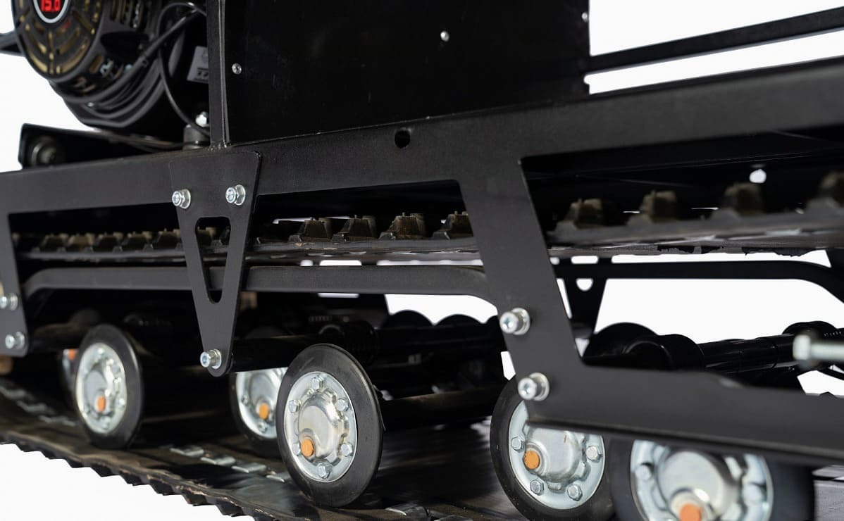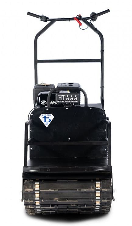 Мотобуксировщик из классической линейки на базе гусеницы шириной 500мм с максимальной площадью опоры (гусеница Буксировщик LONG). Модель мотобуксировщика доработана с учетом пожеланий потребителей: - Новая рама из стального листа конструкционных марок с возможностью самостоятельной регулировки угла атаки; - Новый дизайн капота; - Новый кронштейн трансмиссии; - Металлический отбойник - предназначен для защиты водителя от снега, вылетающего из-под гусеницы; - Унифицированная взаимозаменяемая подвеска: катки, склизы либо колеса (катковую подвеску на унифицированной раме при желании можно заменить на катково-склизовую либо пневмо подвеску без каких-либо переделок рамы).