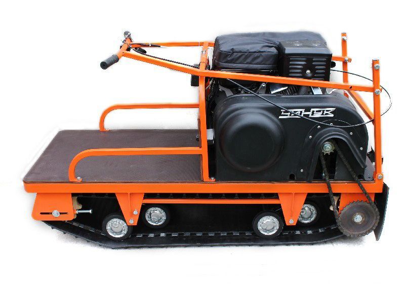В конструкции мотовездехода используется цельная резиновая гусеница шириной 500 мм. Площадь опоры гусеницы улучшает тяговые характеристики, проходимость и устойчивость буксировщика.