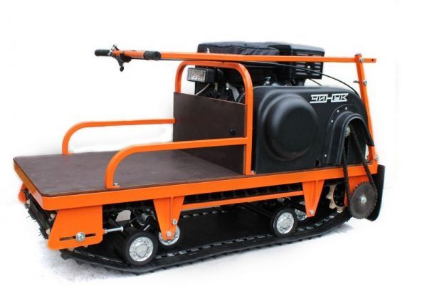 В конструкции мотовездехода используется цельная резиновая гусеница шириной 500 мм. Площадь опоры гусеницы улучшает тяговые характеристики, проходимость и устойчивость буксировщика.