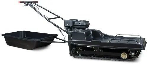 Мотособака весит 65 кг, а размер ее составляет 220 см в длину, 55 см в ширину и 55 см в высоту. Модель оснащена гусеницей шириной 380 мм. Гусеница в сочетании с катковой подвеской способна проходить спокойно по льду и даже по территории без снега.