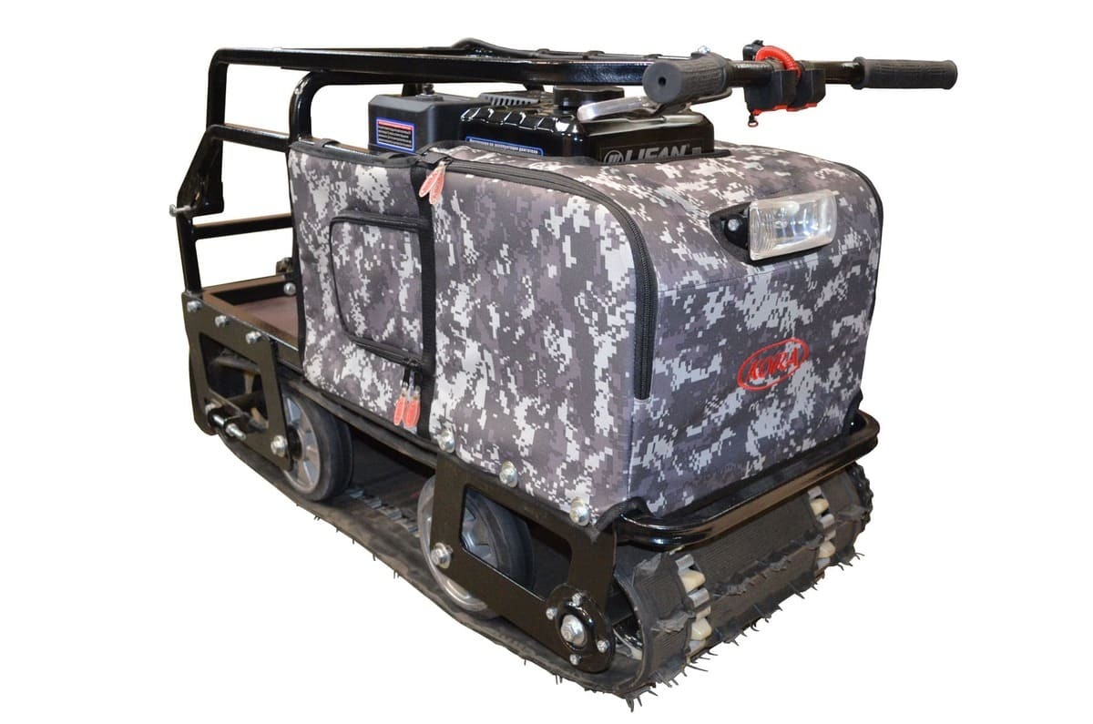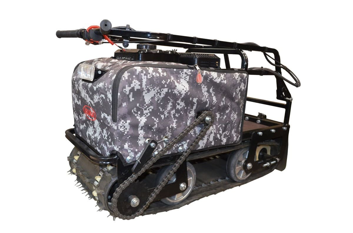 Мотобукс выпускается с гусеницей шириной 380 мм, которая изготовлена из прочного материала, что обеспечивает достаточное сцепление с любой дорогой (особенно, это важно для льда) и надежную работу в зимних условиях. Широкая поверхность равномерно распределяет вес, предотвращая проваливание в снег.