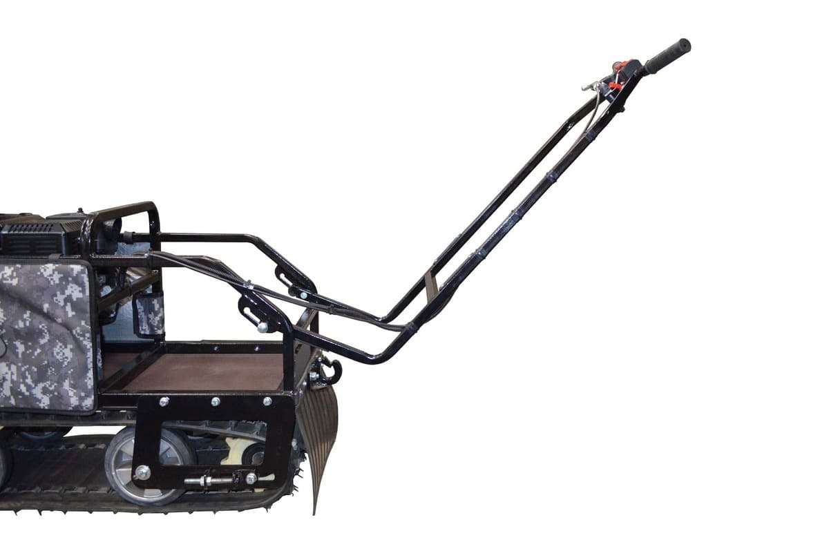 Мотобукс выпускается с гусеницей шириной 380 мм, которая изготовлена из прочного материала, что обеспечивает достаточное сцепление с любой дорогой (особенно, это важно для льда) и надежную работу в зимних условиях. Широкая поверхность равномерно распределяет вес, предотвращая проваливание в снег.