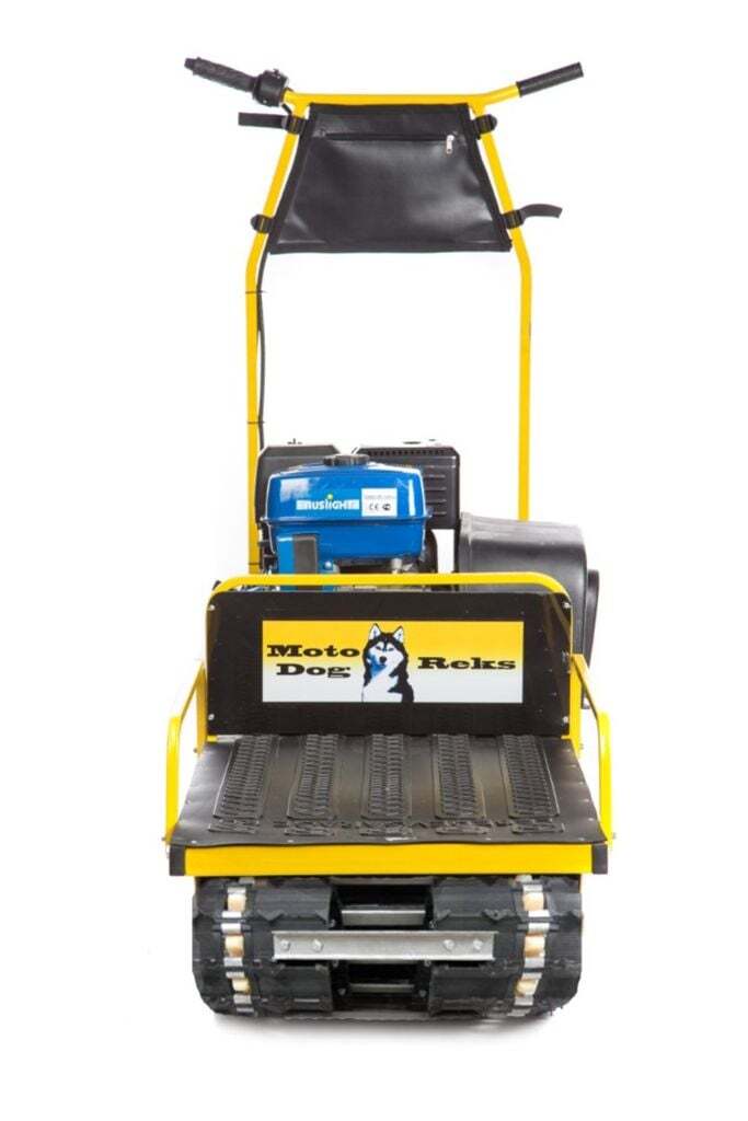 Мотособака оснащена 4 тактным мотором мощностью 15 лошадиных сил, что позволяет набирать скорость до 22 км/ч. Это максимальная скорость, которая позволит владельцу быстро перевезти груз 220 кг. Объем двигателя достигает 420 кубов, а объем топливного бака - 7 литров, что значительно в совокупности сказывается на мощности и производительности мотобукса.