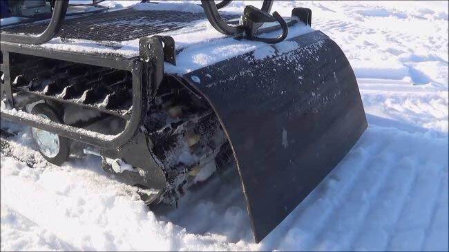 Мотобукс весит 100 кг, а размеры его составляют 185 см в длину, 60 см в ширину и 75 см в высоту. Модель оснащена гусеницей шириной 500 мм. Гусеница в сочетании с катковой подвеской способна проходить спокойно по льду и даже по территории без снега.