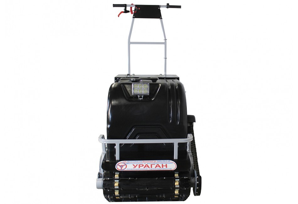 Буксировщик производится с компактной задней площадкой для перевозки личных вещей, инструментов, рыбацких снастей и прочих необходимых мелочей охотнику или рыбаку. Техника оснащена яркой фарой, которая позволяет пользоваться транспортом даже в темное время суток. Морозо- и вибростойкий капот с чехлом карбюратора и пластинами утепления - максимально защищает ДВС от обледенения и от возможности лопнуть.