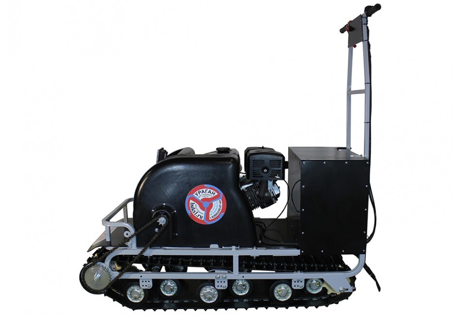 В конструкции мотовездехода используется цельная резиновая гусеница шириной 500 мм. Увеличенная площадь опоры гусеницы улучшает тяговые характеристики, проходимость и устойчивость буксировщика. Мотобукс оснащен специальной системой очистки гусеницы, благодаря которой не скапливается снег внутри и не увеличивает общего груза на транспорте.