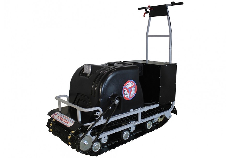 В конструкции мотовездехода используется цельная резиновая гусеница шириной 500 мм. Увеличенная площадь опоры гусеницы улучшает тяговые характеристики, проходимость и устойчивость буксировщика. Мотобукс оснащен специальной системой очистки гусеницы, благодаря которой не скапливается снег внутри и не увеличивает общего груза на транспорте.