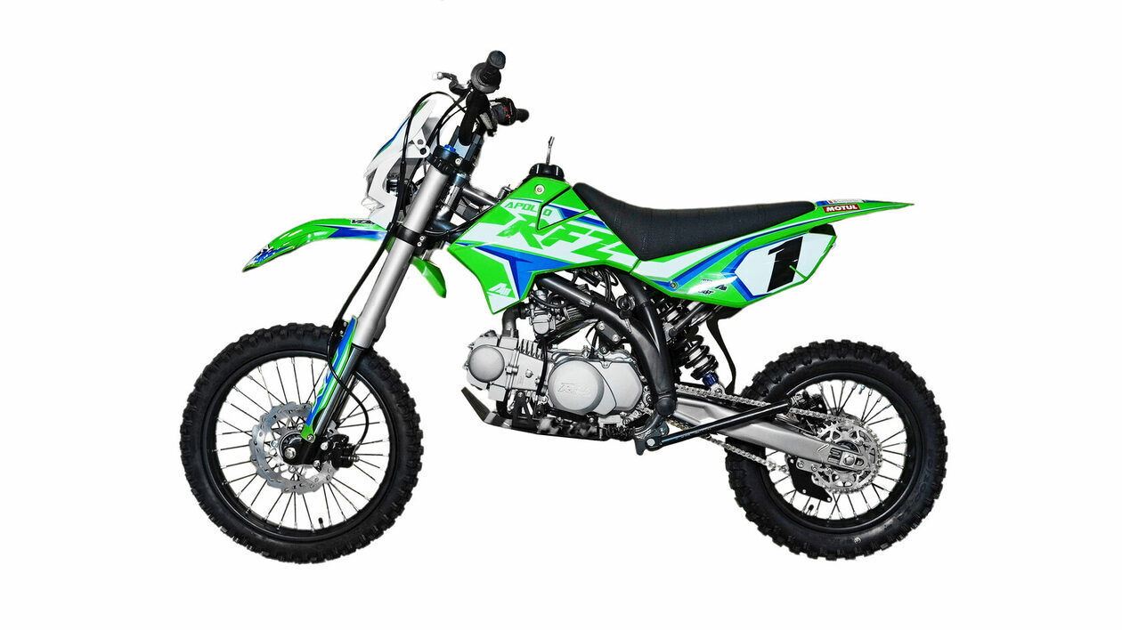 Недорогой и резвый мотоцикл. Питбайк имеет оригинальный, запоминающийся дизайн. Яркая сидушка имеет антискользящее покрытие, что наверняка оценят любители погонять. Сидушку можно легко и быстро снять, в случае необходимости. Замок зажигания отсутствует. Впереди установлен щиток с фарой, который можно снять и установить на его место щиток с номером, который идет в комплекте. На руле установлены фирменные грипсы с логотипом Apollo. Байк оснащен телескопической подвеской и стальным мятником, 4х-тактным 2х-клапанным двигателем и карбюраторной системой подачи топлива.