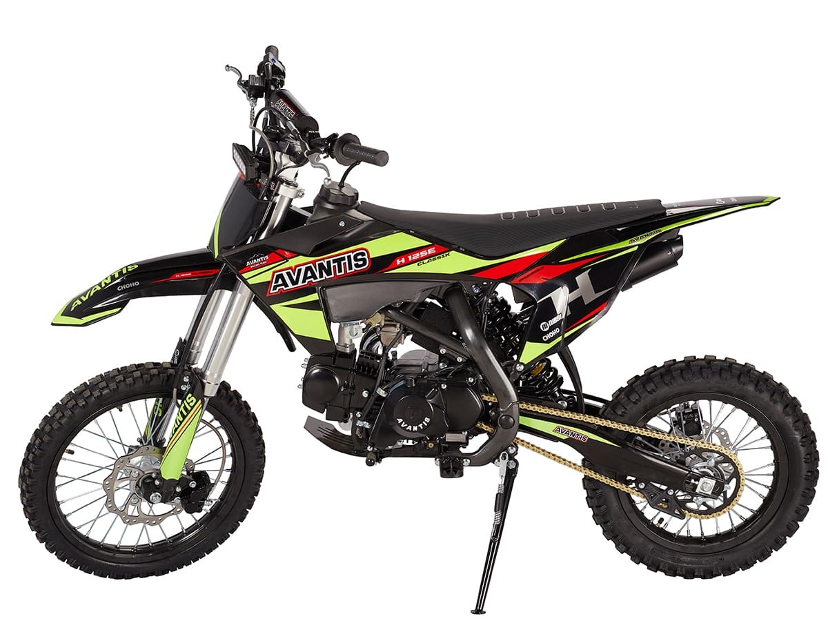 Питбайк Avantis H12-E Classic — это надежный выбор для любителей активного отдыха и начинающих гонщиков. Он оснащен 125-кубовым двигателем YX120 мощностью 10 л.с., который работает на топливе АИ-92. Запуск двигателя возможен как с электростартера, так и с кикстартера, что добавляет удобства в эксплуатации.