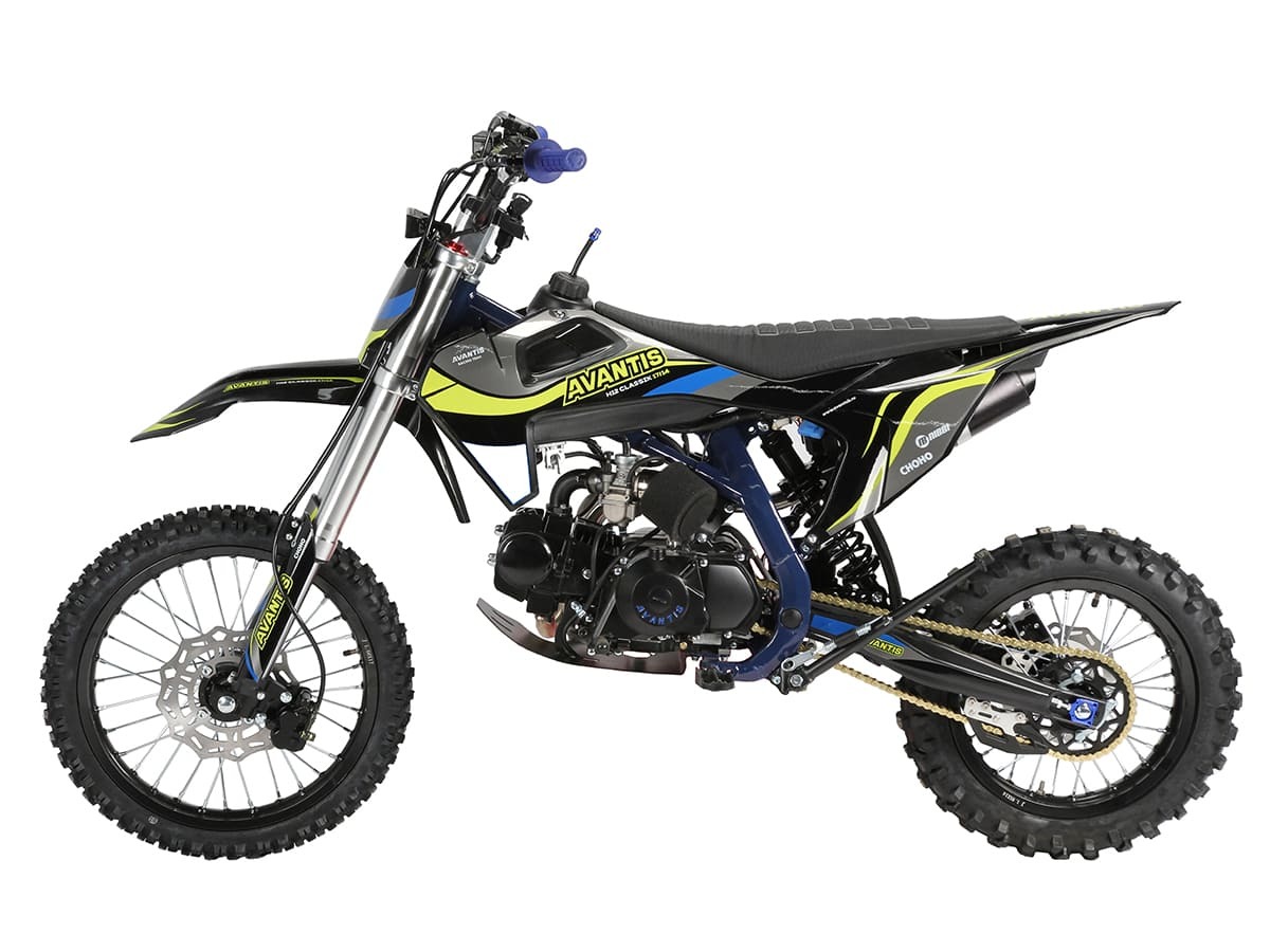 Питбайк Avantis H12-E Classic — это надежный выбор для любителей активного отдыха и начинающих гонщиков. Он оснащен 125-кубовым двигателем YX120 мощностью 10 л.с., который работает на топливе АИ-92. Запуск двигателя возможен как с электростартера, так и с кикстартера, что добавляет удобства в эксплуатации.