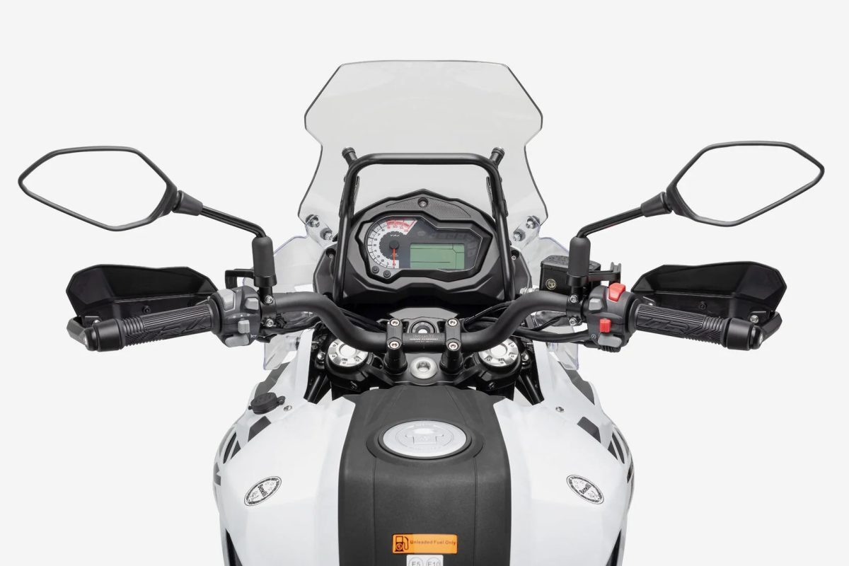 Готовый к экстремальным приключениям в любых условиях, мотоцикл TRK 502 X объединяет в себе мощь двигателя в 500 кубических сантиметров и возможности внедорожного шасси, позволяя вам покорять новые горизонты за пределами обыденного. С его выносливостью можно быть уверенным в надежности на дороге. Спицованные колеса с диаметрами 19 и 17 дюймов обеспечивают надежность и долговечность, а шины Metzeler Tourance обеспечивают отличное сцепление с дорогой в любых условиях. С двойными 320-миллиметровыми тормозными дисками, плавающими суппортами и двухканальной ABS вы будете иметь уверенный контроль над торможением вашего мотоцикла. TRK 502 X оснащен двухцилиндровым рядным двигателем объемом 500 см³ с жидкостным охлаждением, двумя верхними распредвалами, четырьмя клапанами на цилиндр и системой впрыска топлива. С его мощностью 47,6 л.с. при 8500 об/мин и максимальным крутящим моментом 46 Н·м при 6000 об/мин, он обеспечивает достойную динамику. Эргономичный дизайн с элементами облицовки и ветровым стеклом защитят вас от непогоды во время путешествий. С использованием современных технологий создан не только мощный, но и сбалансированный звук, что делает поездку на TRK 502 X еще более захватывающей.