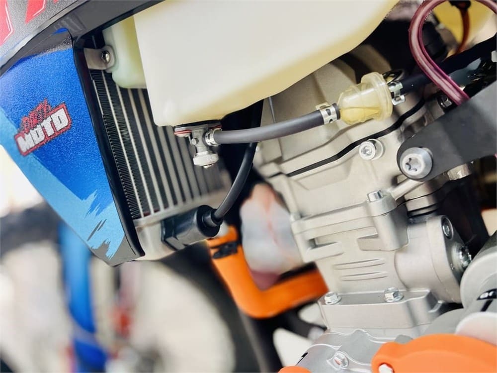 Шестиступенчатая механическая коробка передач (1-N-2-3-4-5-6) предоставляет максимально широкий диапазон передач для точного контроля мощности — от медленного преодоления препятствий до агрессивного разгона на открытых участках. Конструкция шасси акцентирована на снижении массы и повышении точности управления: алюминиевый маятник уменьшает неподрессоренные массы, улучшая реакцию подвески на неровностях, а прочная стальная вилка обеспечивает надёжность при ударных нагрузках. Колеса размером 21 дюйм спереди и 18 сзади соответствуют стандартам полноразмерных эндуро, обеспечивая проходимость и предсказуемость на сложном рельефе.