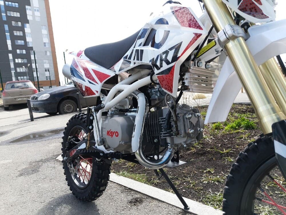 В стальной раме проверенной годами конструкции установлен популярный мотор YX1P56FMJ – 4-тактный двигатель объемом 140 см3 с воздушным охлаждением и 4-скоростной коробкой передач. Весь модельный ряд питбайков и мотоциклов KAYO оснащен спортивной топливной системой от известной компании NIBBI . В данном питбайке установлен карбюратор с 24 миллиметровым диффузором , что позволяет выкручивать двигатель на всю катушку без провалов, при резком открытии газа.