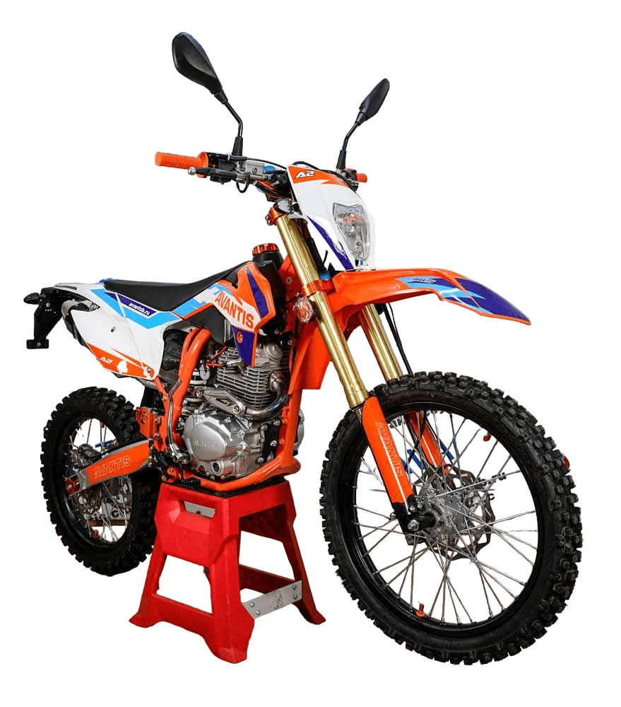 МОТОЦИКЛ AVANTIS A2 BASIC с ПТС подходит для езды по городу и бездорожью. В отличие от моделей без ПТС у него есть полный комплект элементов, необходимых для движения по дорогам общего пользования: поворотники, зеркала заднего вида, клаксон, фара головного света, задний габарит со стоп-сигналом. Управлять им могут взрослые и подростки с 16 лет. Но нужно помнить: мотоцикл — полноправное средство передвижения и для выезда в город водителю потребуется водительское удостоверение с категорией «А».