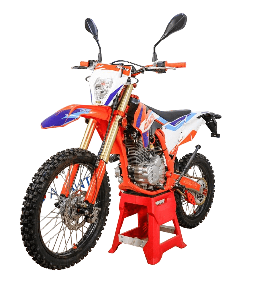 МОТОЦИКЛ AVANTIS A2 BASIC с ПТС подходит для езды по городу и бездорожью. В отличие от моделей без ПТС у него есть полный комплект элементов, необходимых для движения по дорогам общего пользования: поворотники, зеркала заднего вида, клаксон, фара головного света, задний габарит со стоп-сигналом. Управлять им могут взрослые и подростки с 16 лет. Но нужно помнить: мотоцикл — полноправное средство передвижения и для выезда в город водителю потребуется водительское удостоверение с категорией «А».