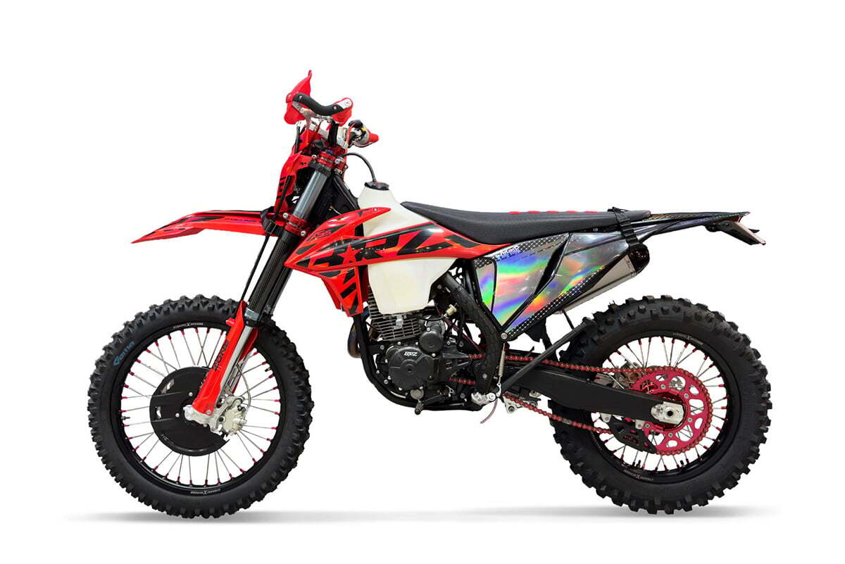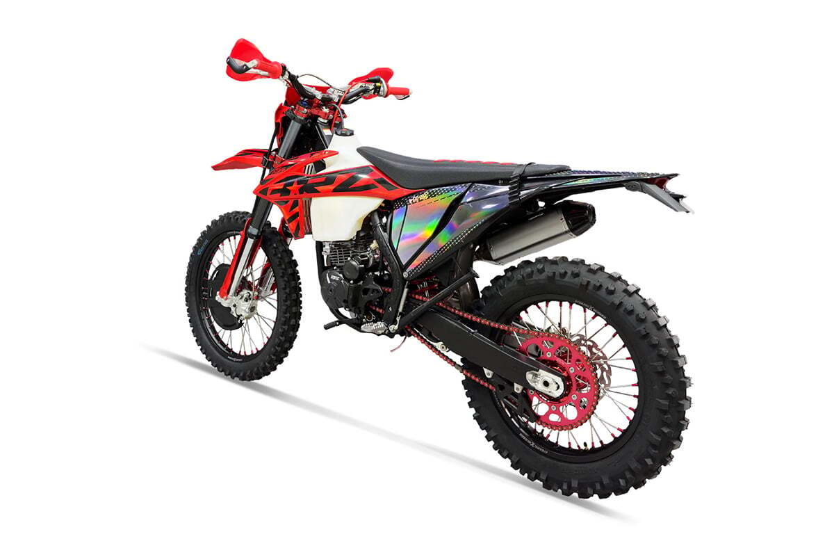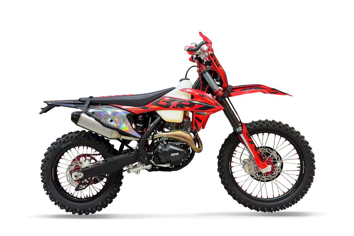 Мотоцикл BRZ X5S (2023) спроектирован специально для опытных пользователей, которым нужна заряженная «воздушка». Он значительно легче своего старшего брата с водяным охолождением, у него нет радиаторов и патрубков, которые могут пострадать при падении. Одновременно с этим, у него очень сочные «низы» за счет увеличенной кубатуры. Топовая ходовая часть имеет большой запас прочности и регулировок, позволяет этому байку принимать участие в соревнованиях.