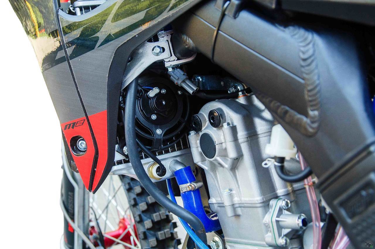 На дисковых тормозах стоит пластиковая защита, закрывающая их от попадания посторонних предметов. Колеса довольно крупного размера (переднее 21 дюйм, заднее 18 дюймов), резина с глубоким протектором – в сумме это дает уверенную езду по бездорожью. Наличие не только кик-стартера, но и электростартера позволит завестись в сложных условиях – при подъеме на гору или, например, в болоте.