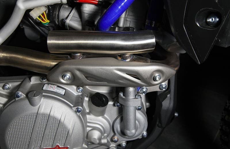BSE M4 – это ограниченная версия хорошего известного 250 кубового полноразмерного М2 на алюминиевой раме. Сердце M4 – мощный, эластичный и надежный 250 кубовый Zongshen ZS 177 FMM мощностью 27 лс с водяным охлаждением. Отличные показатели крутящего момента во всем диапазоне оборотов. Система подачи топлива – спортивный карбюратор NIBBI RACING 34. На мотоцикле установлена спортивная выхлопная алюминиевая система увеличенного диаметра. Имеется вентилятор охлаждения. Коробка передач - 6 ступенчатая механическая. Рама M4 - оригинальная, многосоставная, алюминиевая и невероятно крепкая. Рама запатентованной заводом Bosuer. M4 уже в заводской комплектации готов к покорению серьезного бездорожья и участия в соревнованиях. Подвеска MOJO c большими ходами имеет полный диапазон регулировок и помогает отрабатывать даже самые жесткие приземления, с лёгкостью "проглатывает" все неровности. Установлена вилка “перевертыш” Mojo Racing c “толстыми” перьями диаметром 57 мм с двумя картриджами. Идеальная развесовка и сбалансированность конструкции мотоцикла даёт преимущество при прохождении острых поворотов и подъёмов. На мотоцикле установлено все необходимое для оффроуда: литые рычаги задней прогрессии, алюминиевый маятник, прочный задний бугель, “злая” внедорожная резина. А также: усиленные легкосплавные колёсные диски MOJO, усиленная цепь, защита рук, датчик моточасов, прочные алюминиевые облегченные ступицы MOJO, складные СNC рычаги тормоза и сцепления, колесные подшипники NTN, защита коллектора, картера двигателя и тормозных дисков. Мощная гидравлическая тормозная система HSК Racing с тормозными дисками с увеличенной вентиляцией остановит байк в любых условиях. На BSE M4 также можно с комфортом отправиться в продолжительное путешествие благодаря удобному сиденью, широкому спортивному рулю MOJO, наличию электростартера и топливному баку на 6.5 литра. C яркой LED фарой головного света можно кататься в ночное время. Хочется также отметить современный дизайн мотоцикла. Идеально сбалансированный, устойчивый, крепкий мотоцикл. Ставший уже классикой в мире мотокросса и эндуро среди китайских производителей. Ваши возможности на бездорожье безграничны! Будь то кроссовый трек, соревнования по хард эндуро, либо серьезная покатушка по бездорожью.