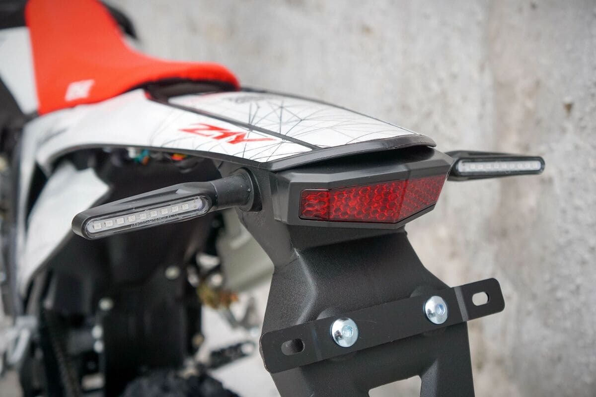 Двигатель установлен проверенный – Zongshen ZS 161 мощностью 12 л.с. У него отличная тяга с низов, поэтому на мотоцикле легко ехать по бездорожью даже с минимальным опытом вождения. Для безопасности при спуске со склонов и в других опасных ситуациях предусмотрены надежные гидравлические тормоза бренда HSK Racing. С завода на байке есть все необходимое для езды по городу: комплект светотехники, поворотники, крепление номера и зеркала заднего вида. А более заметной на дороге модель делает расцветка Road Iceberg со световозвращающей пленкой.