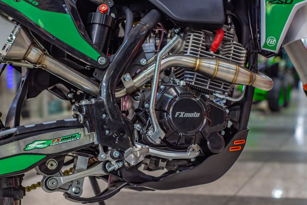 Новинка от компании FXmoto, кроссовый мотоцикл с огромным потенциалом и богатой начинкой. Перед вами X7, давайте ознакомимся с его комплектацией. В основе хромолибденовая рама, прочная и готова к нагрузкам в любых режимах работы. Двигатель ZONGSHEN ZS 172FMM-3A в связке с карбюратором NIBBI PWK32.
