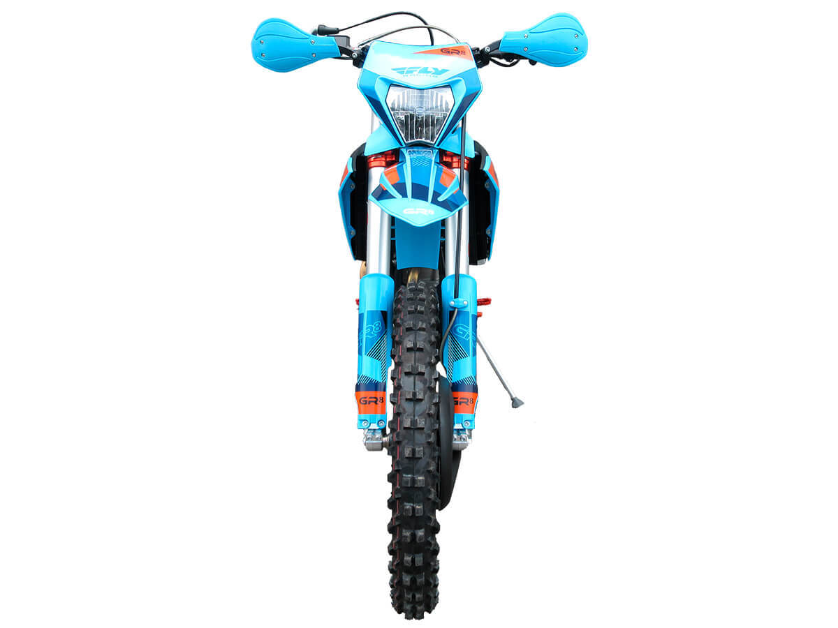 У мотоцикла имеется яркая фара для заездов в тёмное время суток. Уже в базовой комплектации предусмотрена защита кистей.