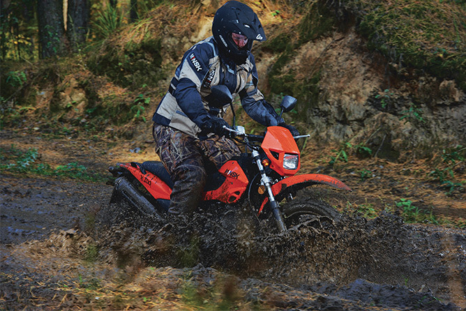 Являясь мотоциклом начального уровня класса эндуро, Минск Х 250 раскрывает свой потенциал там, где заканчивается ровная дорога, и асфальт сменяется песком или гравием. Небольшой вес и длинноходная подвеска, крепкий пластик, окрашенный в массе соответствуют прямому назначению мотоцикла - работать в тяжелых условиях бездорожья.