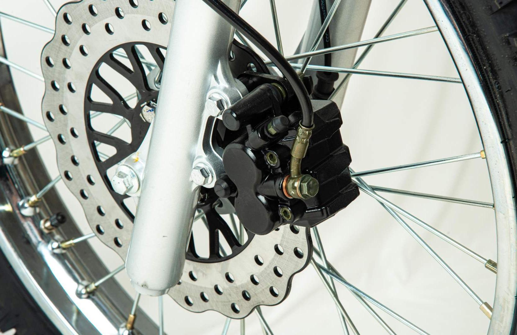Высота по седлу — 910 мм, дает возможность комфортно сидеть в седле даже при высоком росте. Мотоцикл для мотокросса оснащен надежными передними и задними тормозами с двух и одно поршневыми тормозными суппортами соответственно. Колёса спицованные, размер заднего колеса — 18 дюймов, переднего — 21 дюйм. Весит 120 кг, выдерживает нагрузку до 150 кг. Обычная передняя вилка.