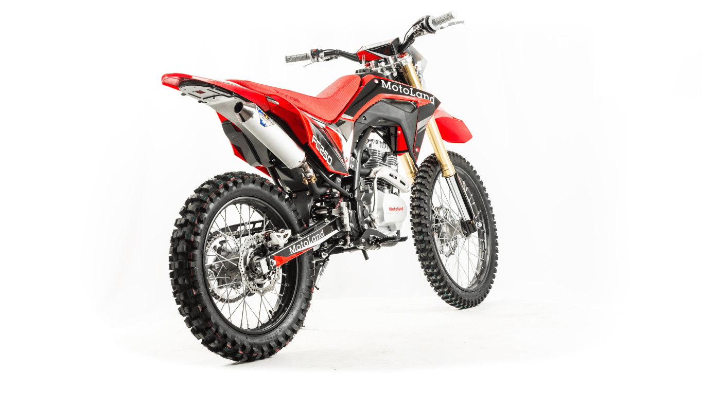 Мотоцикл Motoland Кросс FC250 (2020 г.) - современный транспорт для езды по городским дорогам и пересеченной местности. Отлично подходит для соревнований по мотокроссу. Двигатель мощностью 14 л. с. позволяет набирать разгон до 120 км/ч. Имеет хорошую проходимость, прекрасно ведёт себя на песке и грунте, подходит для асфальтовых дорог. Стальная рама выдерживает вес пользователя до 150кг. Оснащается светодиодными поворотниками и стоп сигналами, блокировкой замка зажигания. Скромный расход топлива, который почти не зависит от того, с какой скоростью едет мотоцикл и на каких оборотах работает двигатель.