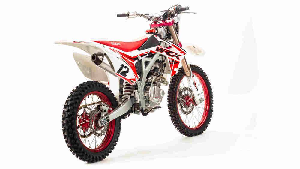 Кроссовый мотоцикл WRX 250 lite - оснащён двигателем 165FMM (17 л.с.), дисковыми тормозами и алюминиевыми ободами. Его шины отлично ведут себя на разных типах почвы, позволяя спокойно преодолевать неровности на дороге. Главное отличие этой модели наличие панели приборов и регулировки задней подвески. WRX250 lite имеет полноценные размеры приближенные к японским стандартам. Это позволяет выполнять более сложные трюки и увеличить управляемость мотоцикла. Так же отлично справляется с ездой по бездорожью, в том числе и песку. Эта модель уже может составить достойную конкуренцию на любительских соревнованиях. Топовый мотоцикл линейки Motoland выглядит соответствующе — стильно и солидно. Без лишнего пафоса, но с уверенностью в собственном превосходстве над аналогами. Как и другие модели Motoland, кроссовые 250 кубовый мотоцикл покрыт комбинированным пластиком, который не ломается при сгибании. Все стыки идеально подогнаны, наклейки ровные. Кроссовый мотоцикл 250 кубов доступен в красном цвете — внешний вид кросса подчёркивает несгибаемый характер и нацеленность на бескомпромиссную спортивную борьбу. Крылья почти полностью белые, чтобы в будущем не было видно загибов. Кроссовый мотоцикл весит 113 кг. Большинство деталей сделаны из алюминия для снижения веса мотоцикла и увеличения его ударной прочности. Из алюминия сделаны обода с усиленными спицами. Усиленная цепь защищена специальным покрытием. Траверсы, ступицы и другие ключевые узлы мотоцикла сделаны из металла CNC, который славится качеством и надежностью. Кроссовый мотоцикл весит 113 кг. Большинство деталей сделаны из алюминия для снижения веса мотоцикла и увеличения его ударной прочности. Из алюминия сделаны обода с усиленными спицами. Усиленная цепь защищена специальным покрытием. Траверсы, ступицы и другие ключевые узлы мотоцикла сделаны из металла CNC, который славится качеством и надежностью. Передняя вилка усилена литыми CNC-траверсами. Задняя маятниковая подвеска с прогрессией и пружинно-гидравлическим амортизатором рюкзачного типа также имеет регулировку сжатия и отбоя. Передние и задние тормоза дисковые, тормозной шланг армированный. На кроссовый мотоцикл 250 установлен руль переменного сечения (28 мм в месте крепления и 22 мм на концах под грипсами) с низким подъёмом. Конусообразные демпфирующие резинки в местах крепления смягчают ударную нагрузку на руль.