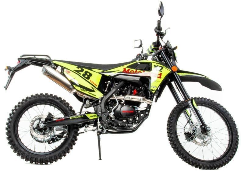 Мотоцикл Motoland X2 250 предназначен для езды по бездорожью и соревнований по мотокроссу. Имеет хорошую проходимость, прекрасно ведёт себя на песке и грунте, подходит для асфальтовых дорог. Оснащён двигателем ZS 172FMM-3A мощностью 21 л.с., и карбюратором NIBBI N 30, разгоняется до 120 км/ч. Выхлопная система из нерж. стали с резонатором "Рowerbomb", который увеличивает мощность на низких оборотах. Это одна из лучших моделей кроссовых мотоциклов по соотношению цены и качества.