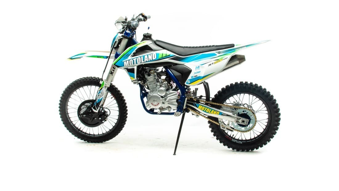 Подходит для новичков и любителей мотокросса. Идеален для бездорожья, его кроссовые шины (110-90) и (80-100) просто созданы для езды по мягкому и среднему грунту. Телескопическая вилка перевернутого типа позволяет легко преодолевать ямы, ухабы и другие неровности. Задняя подвеска маятниковая, с моноамортизатором. Мотоцикл доступен в синем цвете и отлично выглядит. Его дерзкий дизайн подчёркивает неуступчивый спортивный характер байка. MotoLand X3 300 PRO весит 120 кг, выдерживает нагрузку до 150 кг. Рама полудуплексная стальная. Прочный облицовочный пластик не ломается при сгибании, защищает от грязи. Надёжно закрепленный руль имеет переменное сечение: 28 мм в месте крепления и 22 мм на концах под грипсами, а также короткоходную ручку газа. Колёса на стальных ободах, оснащены усиленными спицами и антибуксаторами, размер заднего колеса — 18 дюймов (110-90), переднего — 21 дюйм (80-100), а так же полыми осями. Для запуска двигателя можно использовать электростартёр или кикстартёр. Система зажигания электронная (CDI). Механическая трансмиссия содержит 5 передач. У мотокросса отличный запас хода: объём топливного бака — 6 л, расход топлива — 5 л на 100 км. Передняя фара обновленного дизайна легко включается поворотом замка зажигания и позволяет ездить в сумерках и темноте. Мотоцикл для мотокросса оснащён надёжными передними двухпоршневым тормозным суппортом и задними тормозами с однопоршневым тормозным суппортом. Тормозные диски крепятся на 6 болтов, диаметр заднего тормозного диска 250 мм, переднего — 280 мм. Тормозной шланг армированный. А так же мотоцикл оснащен бардачком под ключи, счёстчиком моточасов и защитой цепи для комфортной эксплуатации.