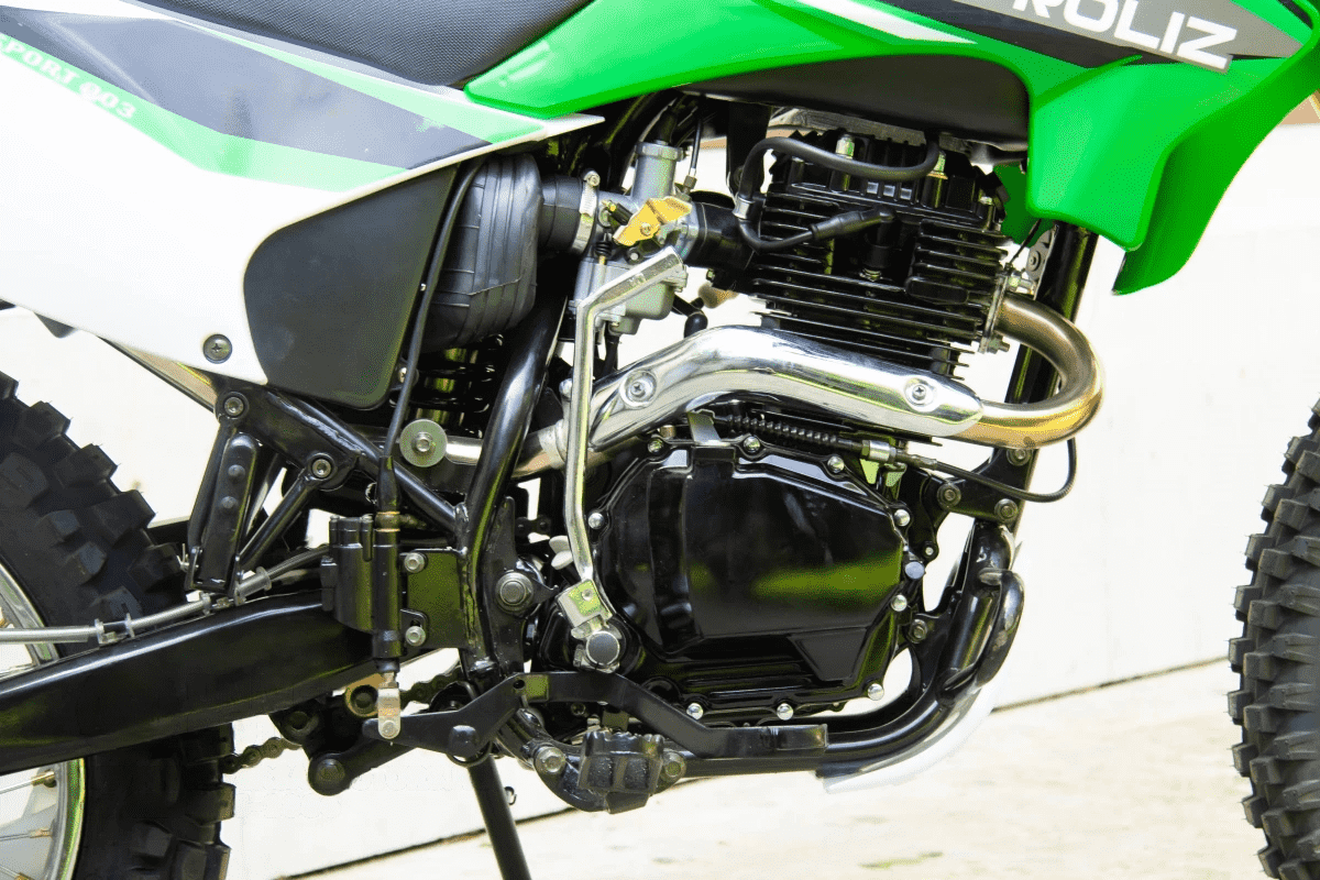Полноценный эндуро мотоцикл с двигателем в 250 кубических сантиметров и с 5-и ступенчатой коробкой передач. На SPORT-003 предустановлены поворотники и зеркала и он подходит для езды по дорогам общего пользования.