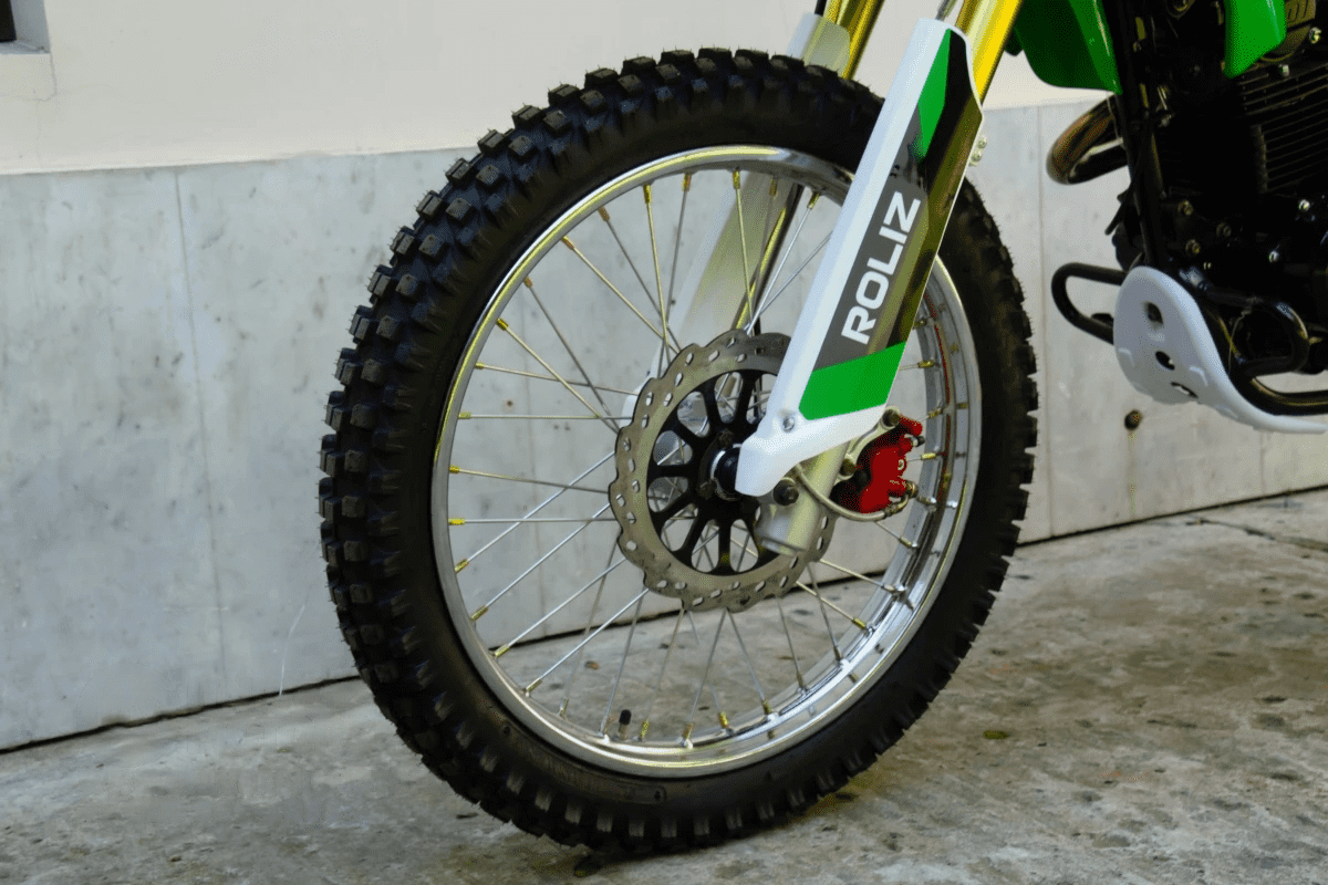 Полноценный эндуро мотоцикл с двигателем в 250 кубических сантиметров и с 5-и ступенчатой коробкой передач. На SPORT-003 предустановлены поворотники и зеркала и он подходит для езды по дорогам общего пользования.