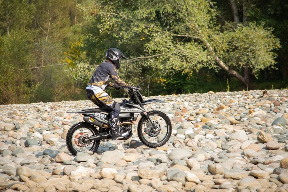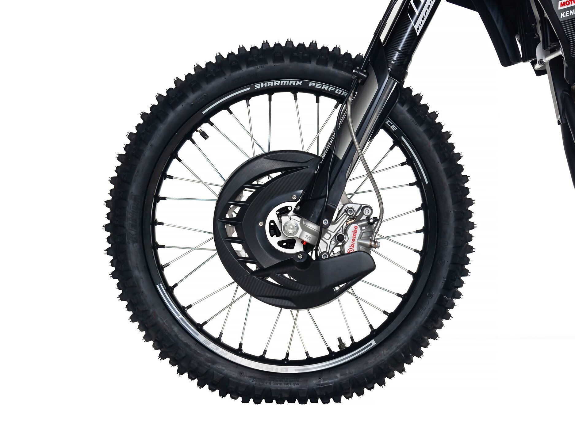 Статус премиального эндуро байка дополняет эргономичный конический руль. Материал — высокопрочный алюминий. Грипсы мягкие и не скользят, защита для рук выдержит сотни падений. Вам останется лишь уверенно схватиться за руль и полететь вперёд со скоростью ветра.