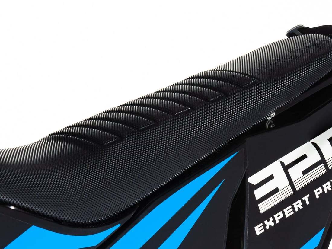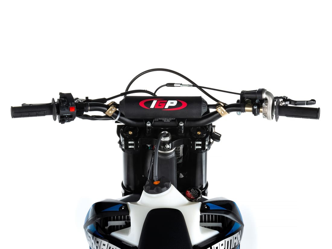 Руль на мотоцикле Expertpro 320 изготовлен из прочного облегчённого алюминиевого сплава по технологии переменного сечения FATBAR. Цепкие грипсы позволяют кистям рук меньше уставать и дозировать открытие заслонки карбюратора максимально точно.