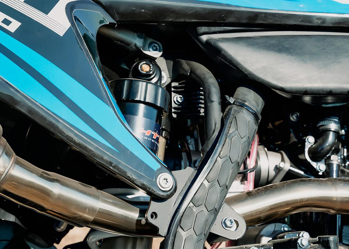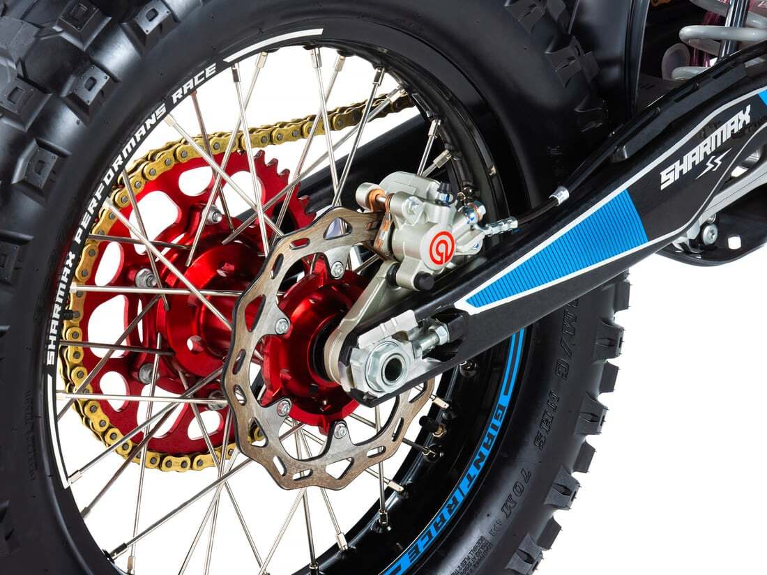 Подвеску Sharmax Expertpro 320 можно настроить под любую поверхность без потери качества. Передняя вилка (с клапаном сброса воздуха) перевёрнутого типа имеет регулировки демпфирования, сжатия и отбоя, а задняя — ещё и с регулировкой преднатяга пружины. Надёжная подвеска поможет не вилять на поворотах и стабильно проходить все сложные участки трассы.