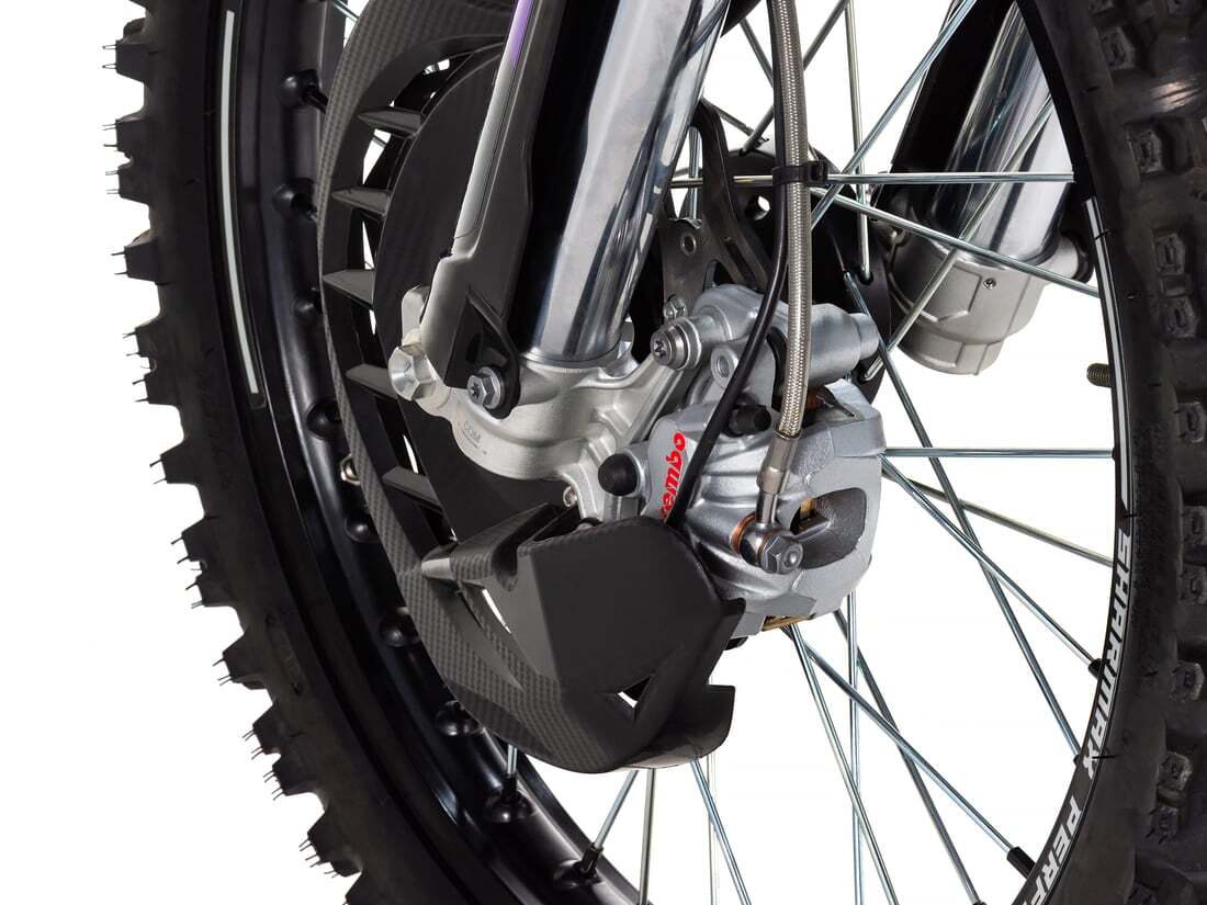Двигатель Нереально мощный 4-тактный двигатель ZS194MQ стал самым мощным во всей истории Sharmax Motors. 44 л. с. и 449 кубов обеспечат быстрый разгон с первых метров дистанции. За цепь не переживайте, даже от такого резвого мотора 520 Choco Gold не порвётся. Этот силовой аппарат сделан, чтобы показать соперникам кто главный на треке. Трансмиссия 6-ступенчатая коробка передач с шестернями из прочного кованного металла практически не изнашивается с течением времени. Лапка переключения — алюминиевая и складная, не пострадает даже в случае жёсткого приземления. Карбюратор NIBBI PWK38 — и этим всё сказано. Карбюратор от легендарного бренда, установленный на лучших эндуро-байках в мире. Топливная смесь высшего качества наполнит цилиндры за долю секунды и обеспечит быстрый старт даже в лютый мороз. Проверено — надёжно. Подвеска Вы можете настроить подвеску фирмы TNT под грязь, камни и песок без потери качества. Передняя вилка имеет регулировки сжатия и отбоя, задняя — справится с любыми преградами: от камней до деревьев. Байк легко настроить под свой вес, подобрав идеальный баланс жёсткости. Электростартер С быстрым и надёжным электростартером вы всегда будете на шаг впереди. Вам нужно лишь нажать кнопку, чтобы начать гонку. Проверенный привод и мощный двигатель стартера дадут несколько драгоценных секунд преимущества и сэкономят время в самый важный момент. Рама Идеальная геометрия. Симметричная дуплексная рама из высоколегированной стали, позаимствованная у профессиональных гоночных байков, обеспечит оптимальную жёсткость и отзывчивость. Благодаря такой форме райдер и байк становятся одним целым, с лёгкостью преодолевая любые препятствия. Руль Несмотря на всю свою мощь, Sharmax Expertpro 450 обладает отличной управляемостью благодаря эргономичному рулю. Материал — высокопрочный алюминий, варианты положений — 3. Грипсы мягкие и не скользят, защита для рук выдержит сотни падений. Вам останется лишь уверенно держаться за руль и устремиться вперёд со скоростью ветра. Безопасность Тормоза мотоцикла Sharmax Motors Expertpro 450 изготовлены на основе технологий компании Brembo. Высокая точность изготовления и качество деталей позволяют достичь аналогичной производительности, высокой точности дозирования усилия торможения, чувствительности и надёжности. Резина Шины Kenda буквально вгрызаются в грунт, на оставляя шансов соперникам на виражах. Агрессивный рисунок шашки, мощный состав в центре покрышки и мягкая плечевая зона обеспечивают идеальный баланс жёсткости и управляемости.