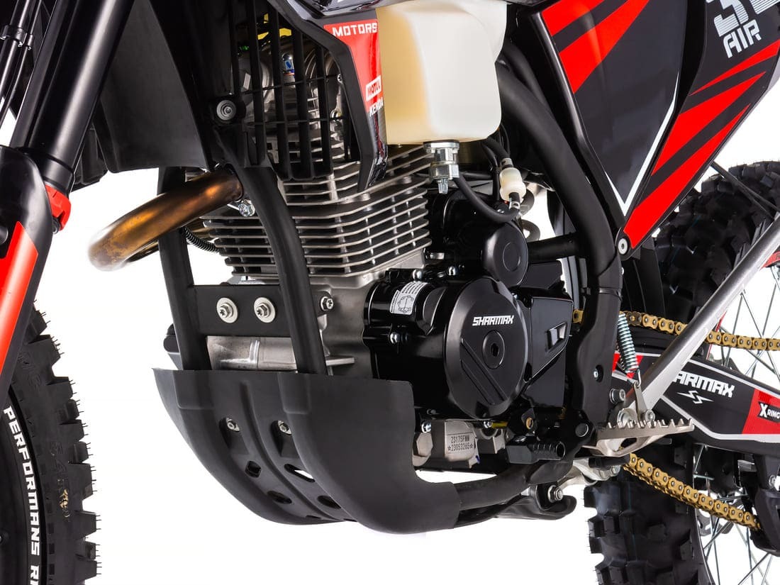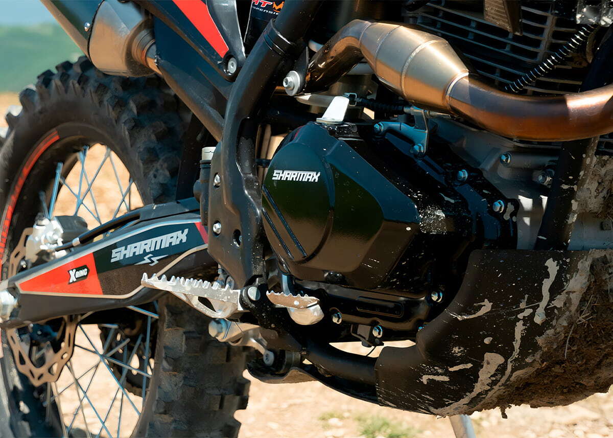 Sharmax Expertpro 300 Air оборудован системой воздушного охлаждения. Нет громоздкого радиатора, вес байка стал меньше, управляемость — лучше. Просто нажмите на газ — и вперёд! За температуру не переживайте — не перегреетесь.