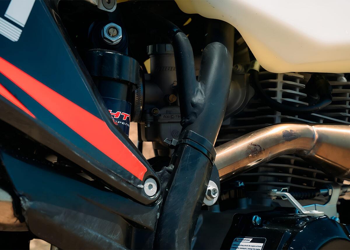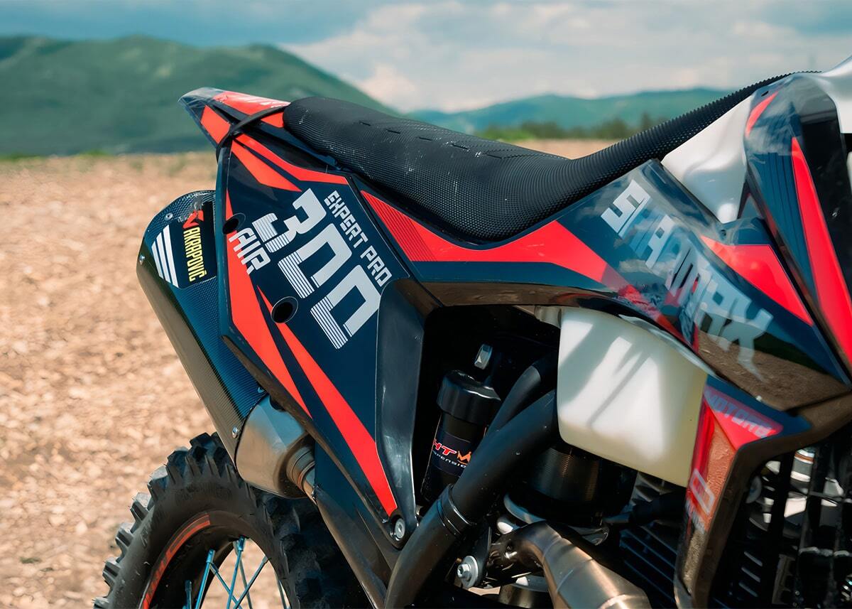 Новый уровень качества в мире эндуро. Sharmax Expertpro 300 Air — один из самых надёжных байков от компании Sharmax Motors. Отзывчивый и быстрый, мотоцикл Expertpro 300 Air подарит ощущение превосходства на любой трассе. Премиальное качество и проверенные технологии легли в основу этой новинки 2024 года. Мотоцикл Sharmax Expertpro 300 Air был создан для тех, кто не боится добиваться новых вершин. Двигатель Мотор ZS175FMM от концерна Zongshen: 300 кубиков и 25 л. с. разгонят байк до максимума с первых секунд гонки. Сам мотор оснащён системой воздушного охлаждения, а значит в нём нет никаких громоздких деталей. Трансмиссия 6-ступенчатая коробка передач с шестернями из высокопрочного кованого металла почти не изнашивается с течением времени. Большинство подобных моделей оснащены 5-ступенчатой коробкой, в то время как Sharmax Expertpro 300 Air даёт вам конкурентное преимущество. Лапка переключения — алюминиевая и складная, не пострадает даже в случае жёсткого приземления. Карбюратор Надёжный карбюратор от компании Nibbi — один из лучших в своём классе. Карбюратор от легендарного американского бренда, установленный на десятках эндуро байков во всём мире. Топливная смесь высшего качества наполнит цилиндры за долю секунды и обеспечит лёгкий старт даже в сильные морозы. Подвеска Подвеску фирмы HTW можно настроить под любой стиль езды и вес райдера. Передняя вилка имеет регулировки демпфирования, сжатия и отбоя. Задний амортизатор имеет регулировки демпфирования, быстрого сжатия, медленного сжатия, отбоя, а также регулировку преднатяга пружины Электростартер Хотите быть на шаг впереди? С быстрым и надёжным электростартером вам нужно лишь нажать кнопку, чтобы продолжить гонку. Проверенный привод и мощный двигатель стартера дадут несколько драгоценных секунд преимущества и сэкономят время в самый важный момент. Охлаждение Sharmax Expertpro 300 Air оборудован системой воздушного охлаждения. Нет громоздкого радиатора, вес байка стал меньше, управляемость — лучше. Просто нажмите на газ — и вперёд! За температуру не переживайте — не перегреетесь. Рама Идеальная геометрия. Симметричная дуплексная рама из хроммомолибденовой стали, позаимствованная у профессиональных гоночных байков, обеспечит оптимальную жёсткость и отзывчивость. Благодаря такой форме райдер и байк становятся одним целым, с лёгкостью преодолевая любые препятствия трека. Руль Статус премиального эндуро байка дополняет эргономичный конический руль Twin Wall. Материал — высокопрочный алюминий. Грипсы мягкие и не скользят, защита для рук выдержит сотни падений. Вам останется лишь уверенно схватиться за руль и полететь вперёд со скоростью ветра.