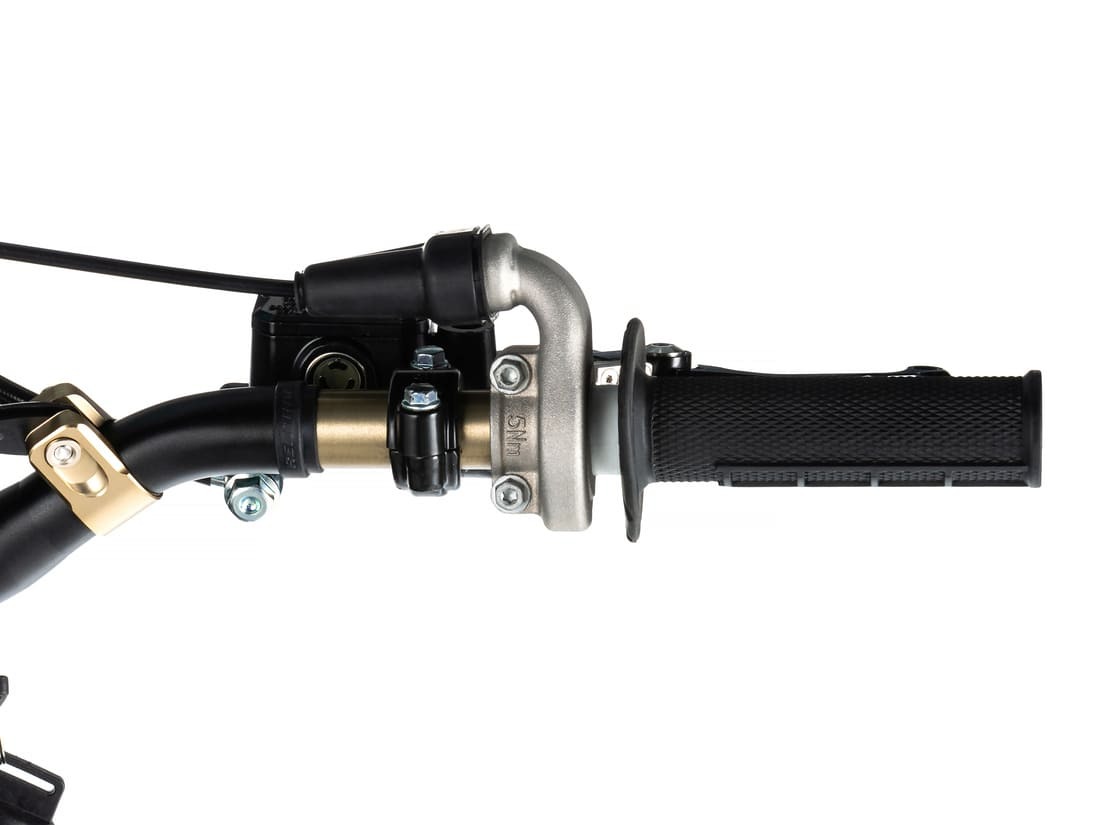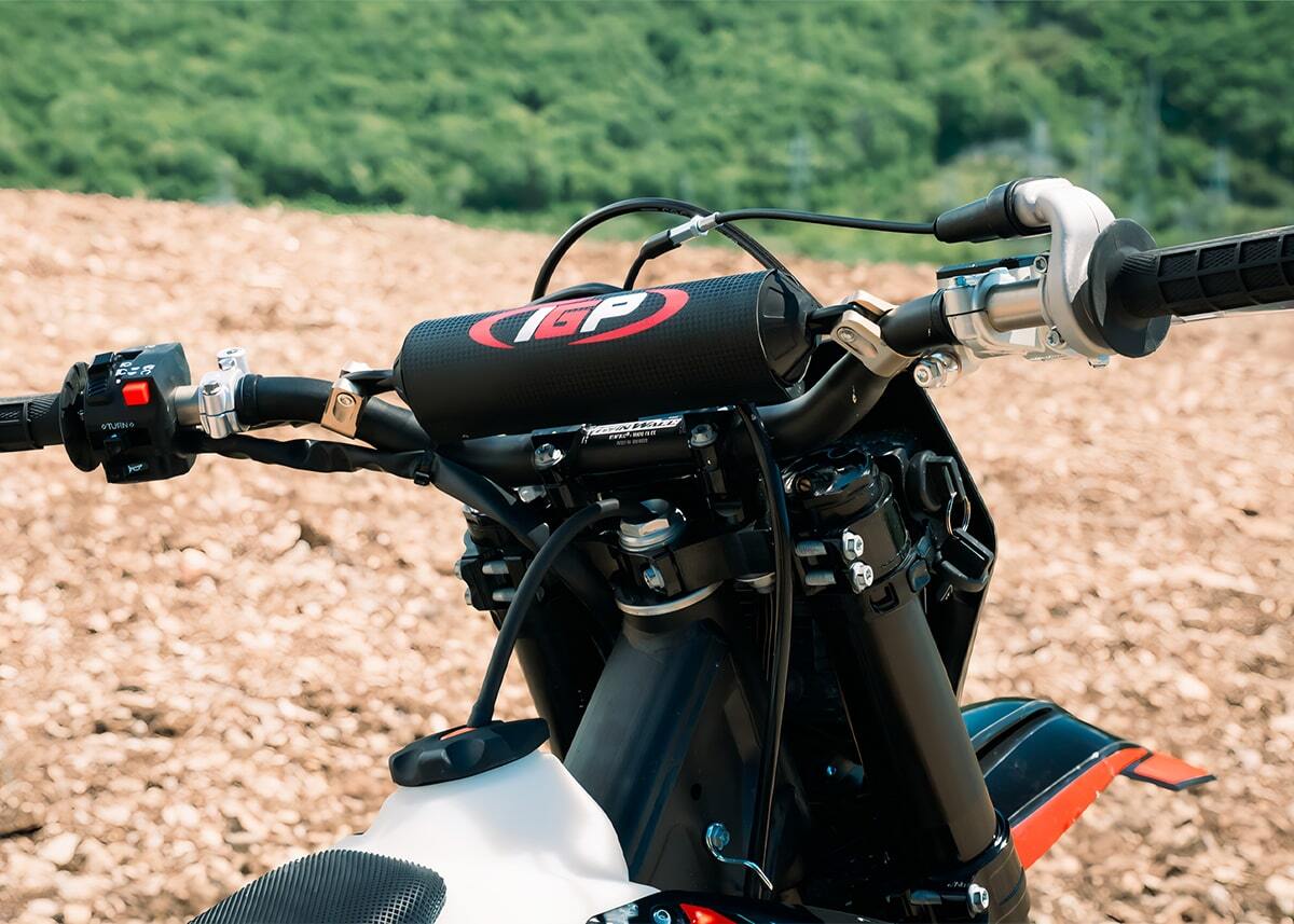 Статус премиального эндуро байка дополняет эргономичный конический руль Twin Wall. Материал — высокопрочный алюминий. Грипсы мягкие и не скользят, защита для рук выдержит сотни падений. Вам останется лишь уверенно схватиться за руль и полететь вперёд со скоростью ветра.