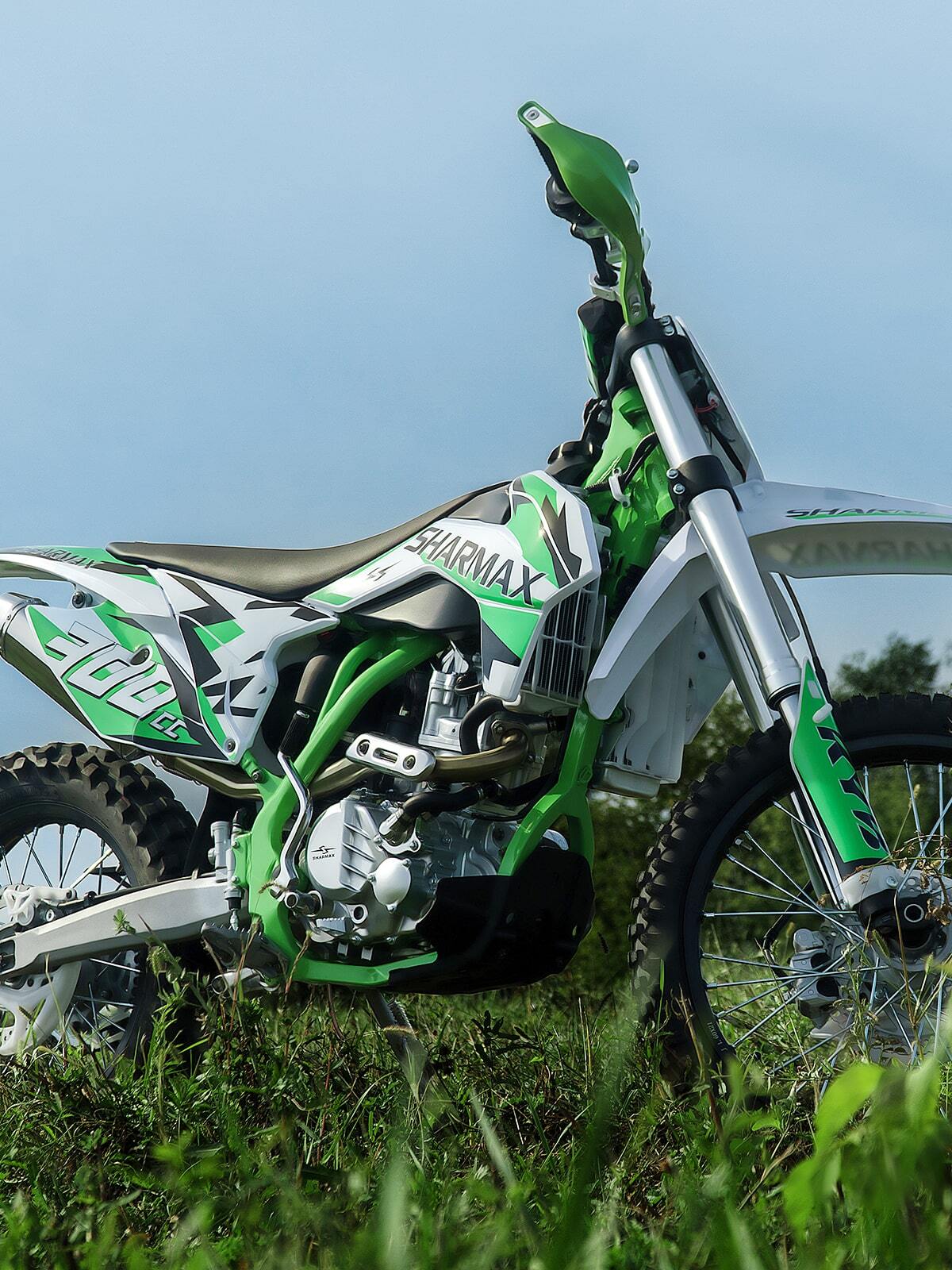 Внедорожный мотоцикл Sharmax Power Max 300 идеально подойдёт для более опытных райдеров. Байк построен на раме высокой прочности из хроммолибденовой стали. Задний маятник из прочного алюминиевого сплава с оригинальной геометрией, повышающей прочностные характеристики, при уменьшенном весе узла. Двигатель с объемом 280 куб. см и мощностью 29 л. с. позволяет добиться серьёзных скоростных показателей.
