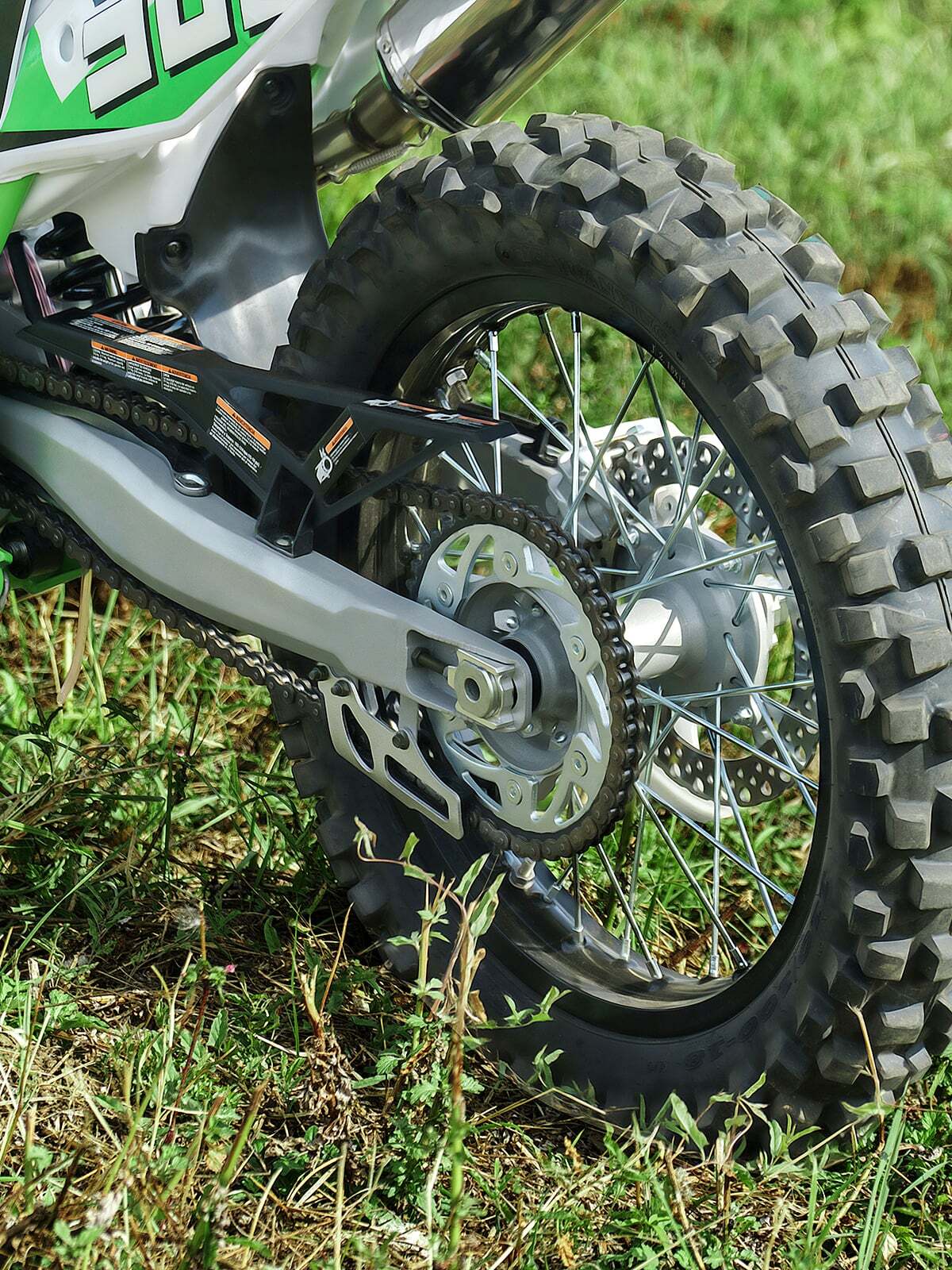 Мотоцикл Sharmax Power Max 300 комплектуется спортивной регулируемой подвеской двух мировых брендов KYB-Tech и WP. Спортивные колеса 21/18, многофункциональная приборная панель со спидометром, тахометром, одометром, индикатором передач и заряда батареи станут дополнительным бонусом для комфорта райдера. Приводная цепь X-Ring 530X-Ring выпускает мотоцепи, имеющие специальное уплотнительное кольцо в конструкции. Данное кольцо, выполненное из твёрдой резины, располагается между внутренней и наружной пластинами роликовой цепи: она не пропускает пыль снаружи и задерживает смазку внутри. Таким образом, уплотнительное кольцо обеспечивает отсутствие чрезмерного растяжения, долгий срок службы цепи без дополнительного смазывания, а также отличается пониженным уровнем шума. Управление байком всегда под контролем благодаря эргономичному рулю переменного сечения из ударостойкого и прочного алюминиевого сплава 7015. Мягкие силиконовые грипсы руля, короткоходная ручка газа, легкий выжим сцепления, а также фара с регулировкой наклона и LED-лампой позволят комфортно использовать байк как в любительских гонках, так и в серьёзных кроссовых выездах. Благодаря колёсам из высокопрочного алюминия 7116 с нержавеющими спицами и фрезерованными ступицами, можно преодолевать серьёзные каменистые препятствия, не опасаясь повреждения обода.