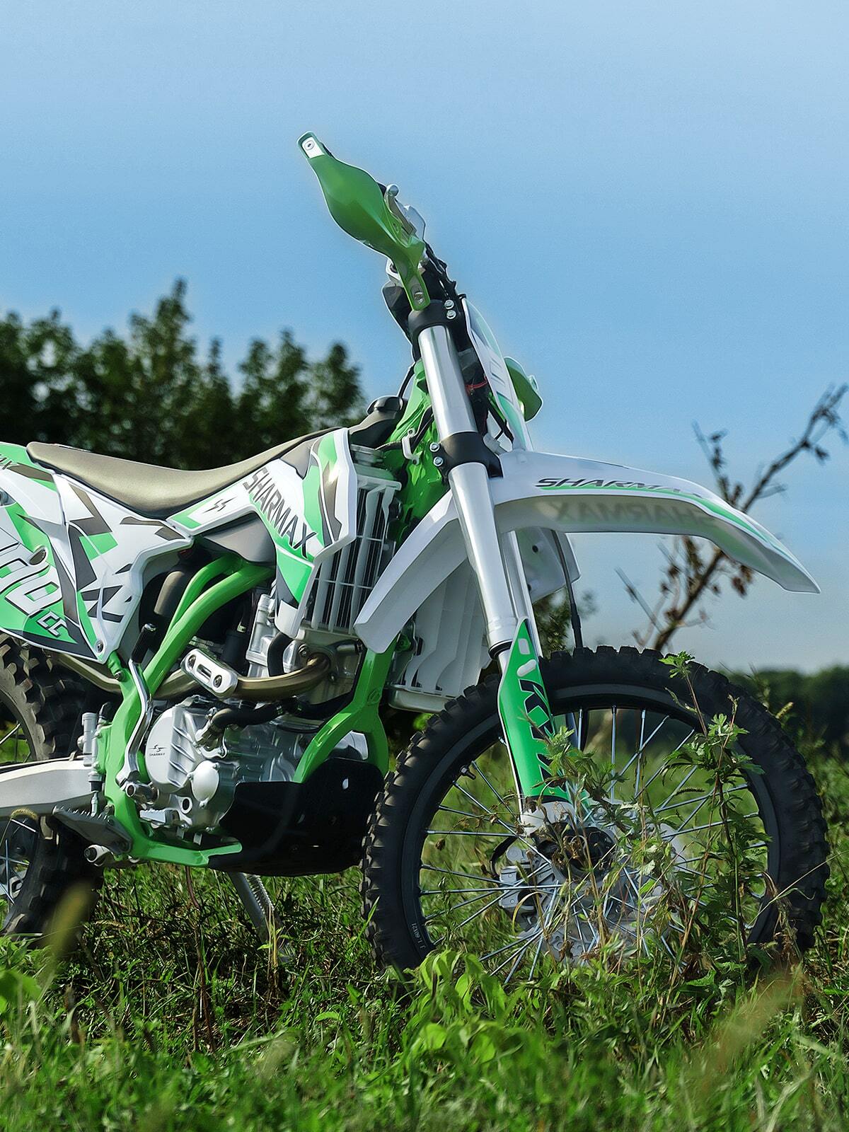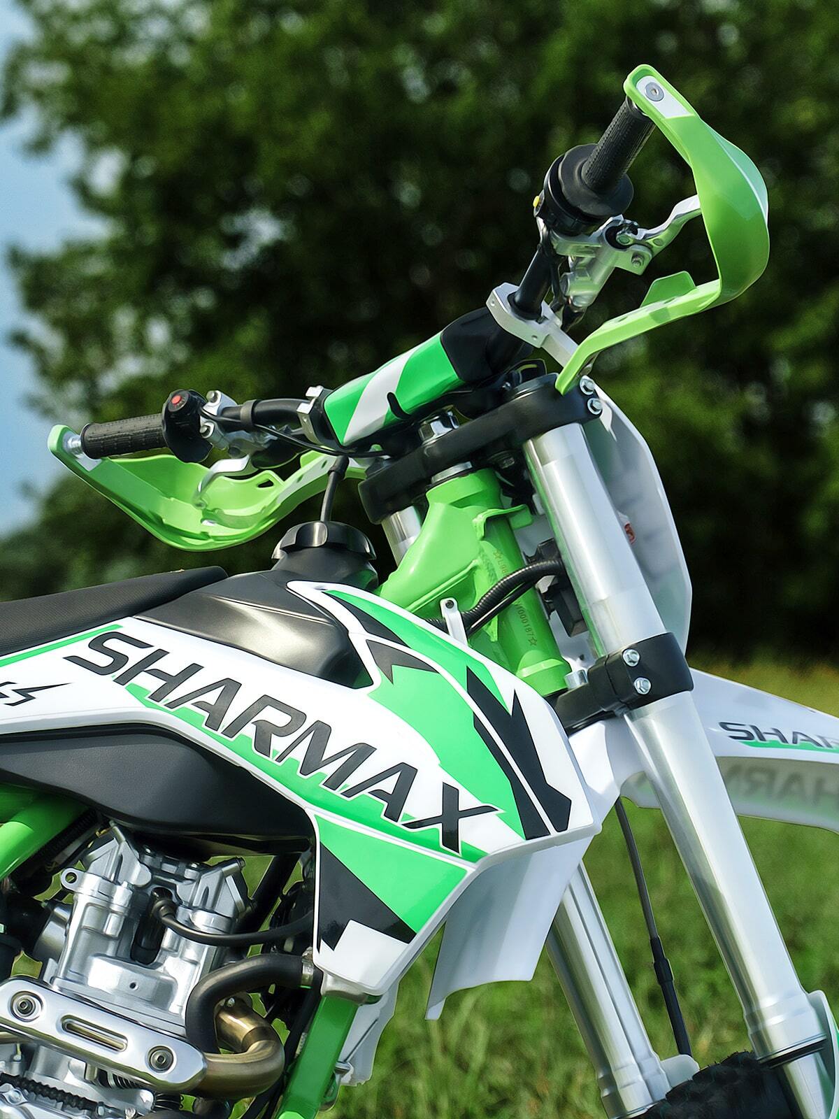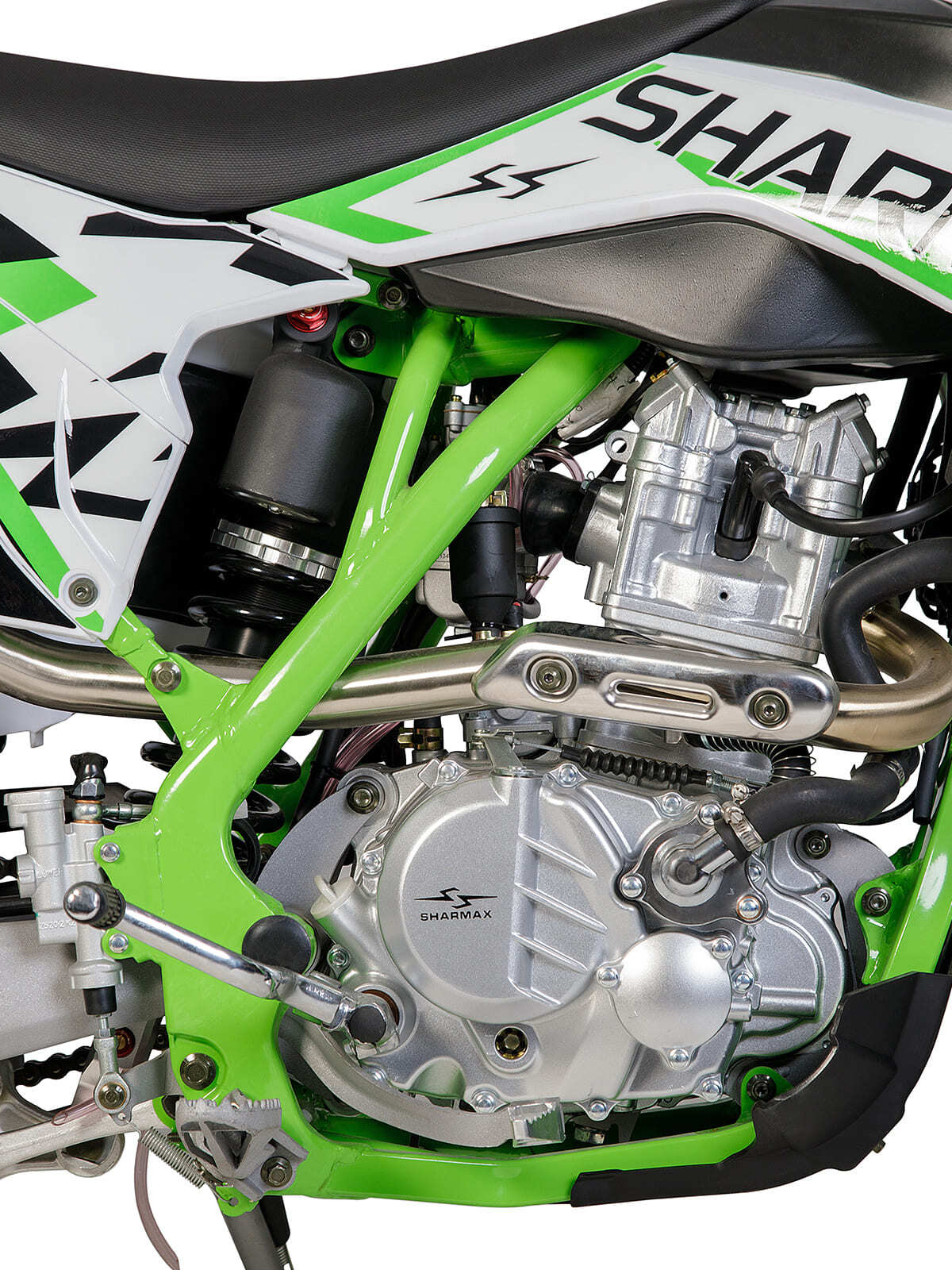 Внедорожный мотоцикл Sharmax Power Max 300 идеально подойдёт для более опытных райдеров. Байк построен на раме высокой прочности из хроммолибденовой стали. Задний маятник из прочного алюминиевого сплава с оригинальной геометрией, повышающей прочностные характеристики, при уменьшенном весе узла. Двигатель с объемом 280 куб. см и мощностью 29 л. с. позволяет добиться серьёзных скоростных показателей.
