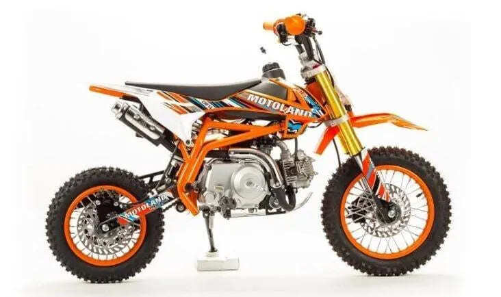 Недорогой надёжный питбайк CRF10 идеален для поездок по грунтовым дорогам и бездорожью для детей которые уже научились ездить на маленьких мотоциклах объемом 70 куб.см. Хорошо чувствует себя на мягком и среднем грунте, разгоняется до 50 км/ч.