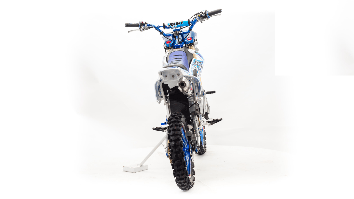 У кроссового мотоцикла CRF125 отличный узнаваемый дизайн. Конструкция подчёркивает неуступчивый спортивный характер питбайка, который не остановится ни перед одним препятствием. Пластик комбинированный, прочный, не ломается при сгибании. Кроссовый мотоцикл CRF125 доступен в красном и синем цвете, при этом в основной цвет окрашен не только пластик, но и обода колёс и другие детали питбайка. Передняя подвеска — телескопическая нерегулируемая вилка перевёрнутого типа, которая отлично подходит для преодоления ям, ухабов и других неровностей плохих дорог или их отсутствия. Задняя подвеска маятниковая с моноамортизатором. Руль 22 мм с высоким подъёмом и перекладиной удобен для мотоциклистов разного роста. Ручки руля — комфортные PRO TAPER. Питбайк оснащён складными рычагами сцепления и переднего тормоза, а также CNC-лапкой переключения передач. Питбайк весит всего 78 кг, при этом выдерживает вес до 150 кг. Оснащён CNC траверсами, рама полудуплексная стальная, мотоцепь качественная. Колёса спицованные, сделаны из прочного и лёгкого алюминия. Размер заднего колеса — 14 дюймов (350 мм), переднего — 17 дюйм (430 мм). Тормоза дисковые, передний тормозной суппорт двухпоршневой, задний — однопоршневой. Питбайк оснащён карбюратором с фильтром нулевого сопротивления VM22 MIKUNI и одноцилиндровым четырёхтактным двигателем с воздушным охлаждением. Надёжный мотор мощностью 9 л. с. и объемом 125 см³ разгоняет кроссовый мотоцикл CRF125 до 90 км/ч. Коробка передач механическая, четырёхступенчатая. Система зажигания электронная (CDI), для запуска двигателя можно использовать кикстартер. Сверхпроходимость. Покрышки с шипами и высоким грунтозацепом идеальны для бездорожья. Мощность мотора и небольшой вес питбайка позволяют ему преодолевать значительные препятствия и непролазную грязь, хорошо заходить в подъёмы. Для поездок при низкой видимости и в ночное время суток питбайк оснащён фарой, которая включается при повороте замка зажигания (1 – выключить, 2 – включить, 3 – свет). Также в комплекте есть щиток для номера, который ставится вместо фары. Питбайк 125 относится к недорогим моделям, которые при должной эксплуатации работают без сбоев и капризов. Кросс неприхотлив в обслуживании, не занимает много места в гараже. При необходимости в нём легко сменить любую повреждённую деталь. Купить питбайк 125 вы можете в официальном магазине Мотолэнд, здесь же всегда можно приобрести запасные детали и комплектующие, которые стоят недорого и всегда есть в продаже. При покупке питбайка не забудьте о защитной экипировке.
